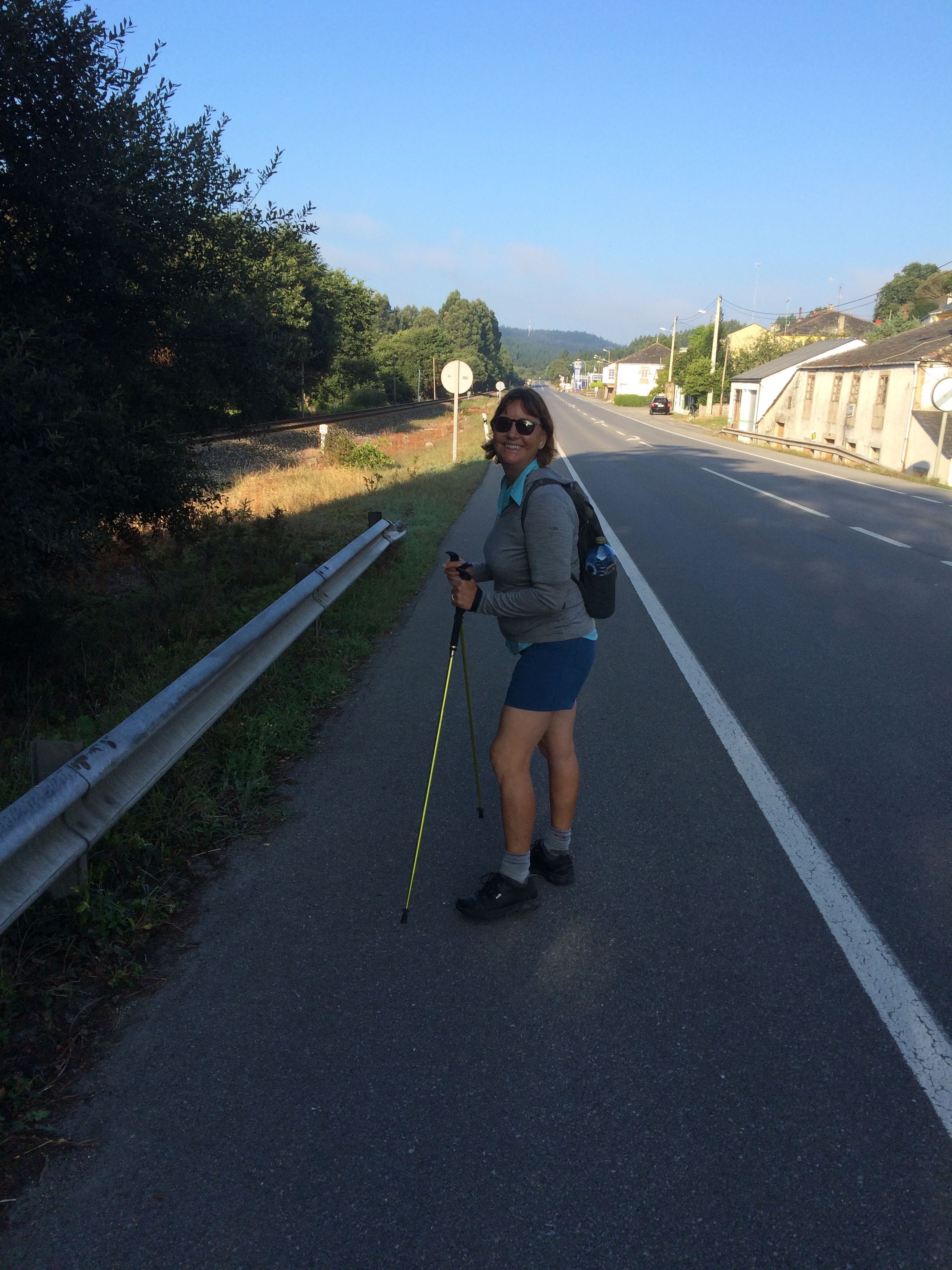 Wow! What a difference not having the backpack on makes! Very nippy again this morning when we got up: a leisurely breakfast at 8am, in the car at 9am and back at Baamonde by 9:20am, Al with a jumper on for the first time. 3kms on the highway to start then a lovely walk through a mix of hamlets, old oak forest and the usual pine and eucalyptus forests. For the second or third time only, we missed a turn and got slightly off the Camino but only for a few hundred meters then regained the track before stopping after an hour and a half at Carballedo for coffees and a bocadillo. As we drove to Baamonde we saw perhaps a dozen peregrinos walking along the highway, and most of them were here having their mid-morning break! From Carballedo a very similar walk towards Miraz for lunch. We stopped along the way at a place where a guy does amazing works in stone and also does candle wax Knights Templar sellos to go in your credencial so we got one of those each. From Miraz, where we were scheduled to stop, at the suggestion of the folk who run the hotel we are staying at, we pushed on to Alto do Mámoa, about 6 1/2 kms further on. The landscape really changed as we scaled the next mountain or hilltop up to 610 m – we stepped out from forest into fairly exposed granite as we moved over the top. We called our hosts from the sign at Alto da Mámoa and we’re back in our room by 4:10pm for a 21km day and 743kms overall…