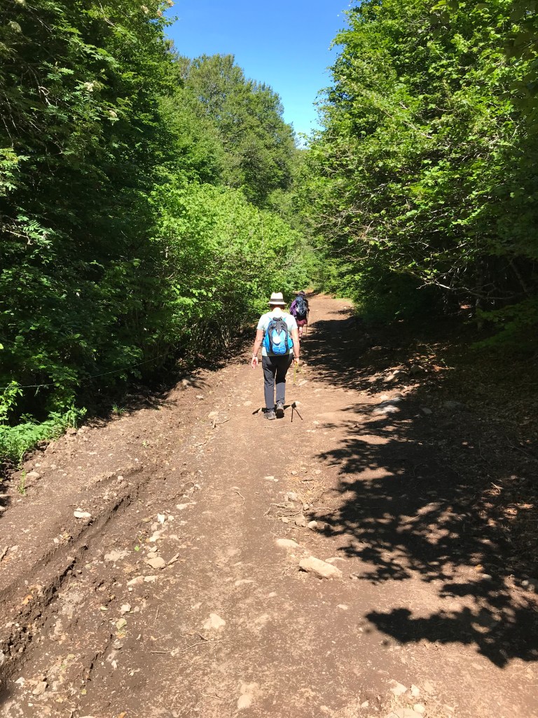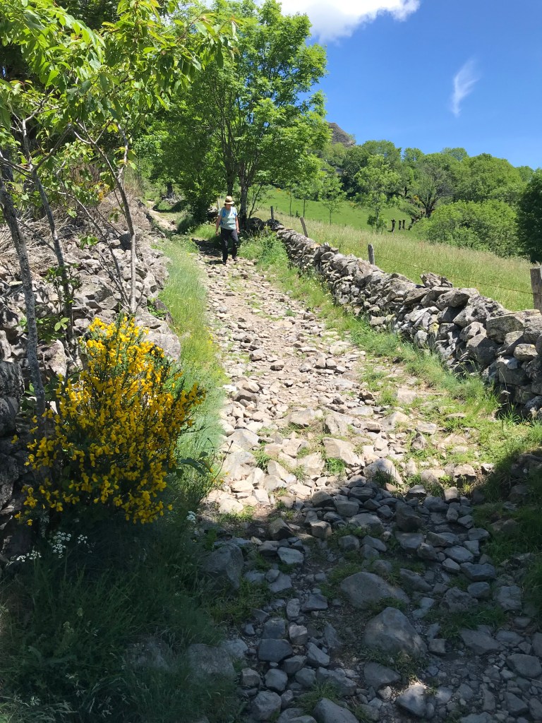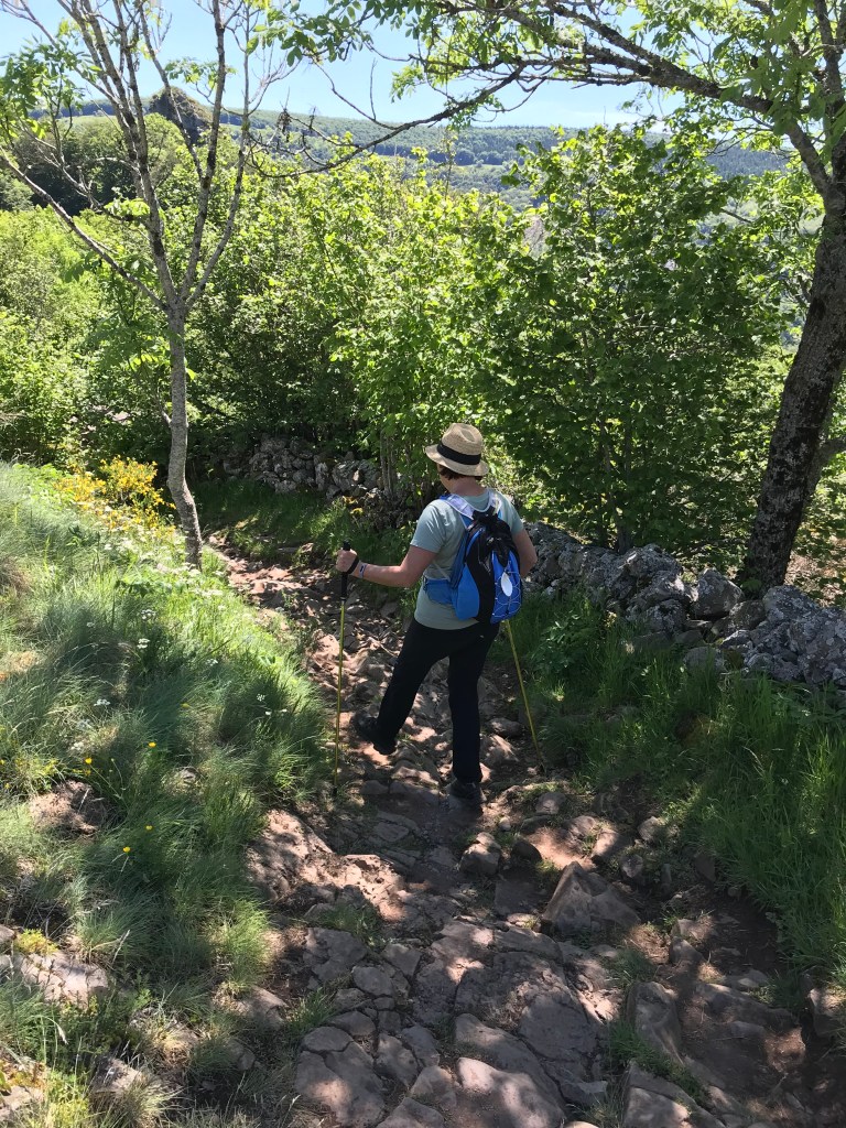 After Aubrac, the track changed as we descended about 500m over nearly 8kms. For most of the way rain had scoured the earth away leaving a very rocky path: the steeper the path, the rockier and more difficult it had become.