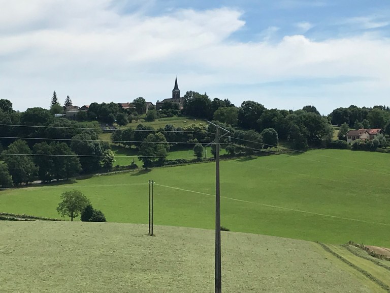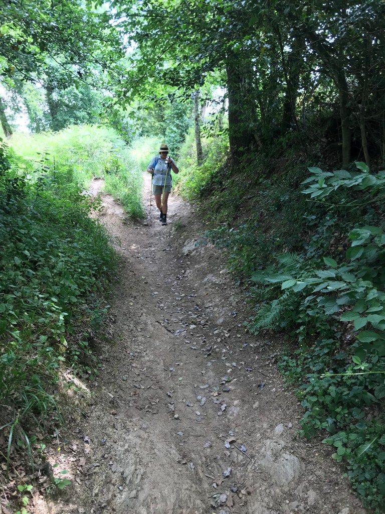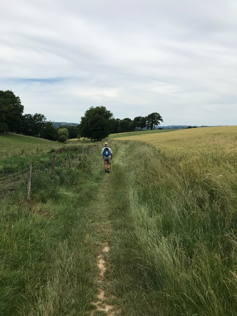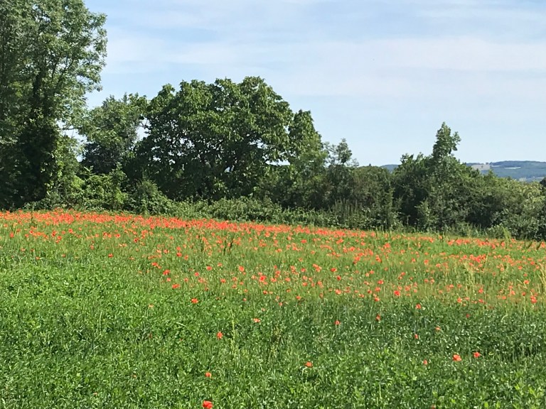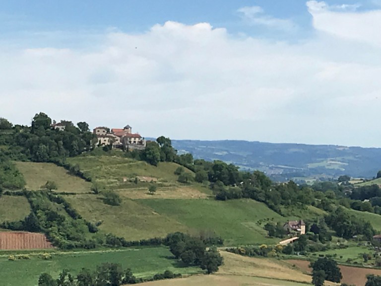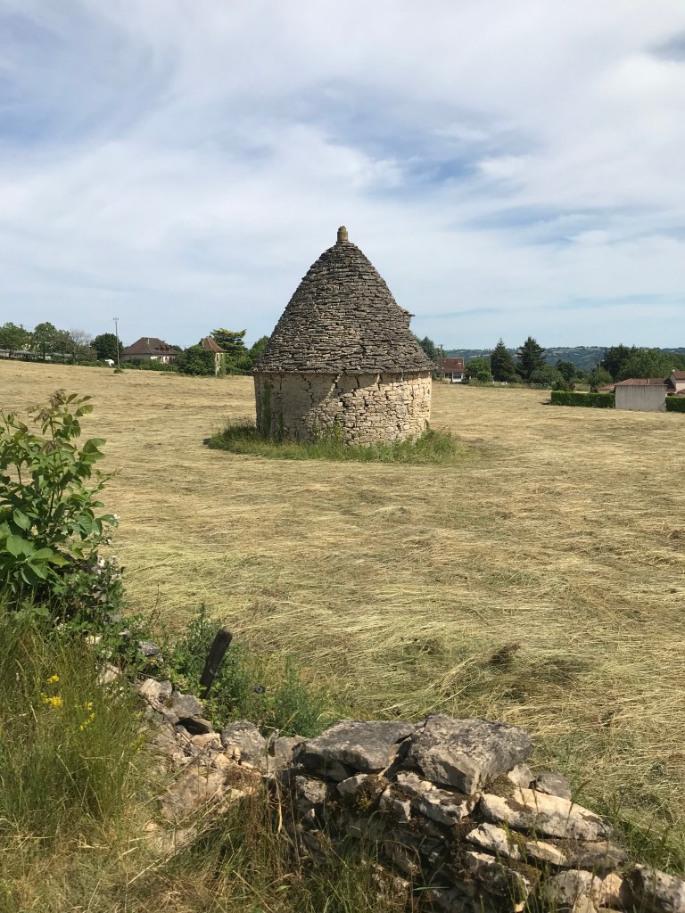 Between Montredon and the start of the descent into Figeac we moved through farming country again on various surfaces but the heat was getting to us, without much in the way of views to take our minds of it! We had a couple of more stops along the way, one using our chairs and a second at St Felix (where a bar was advertised but was closed).
