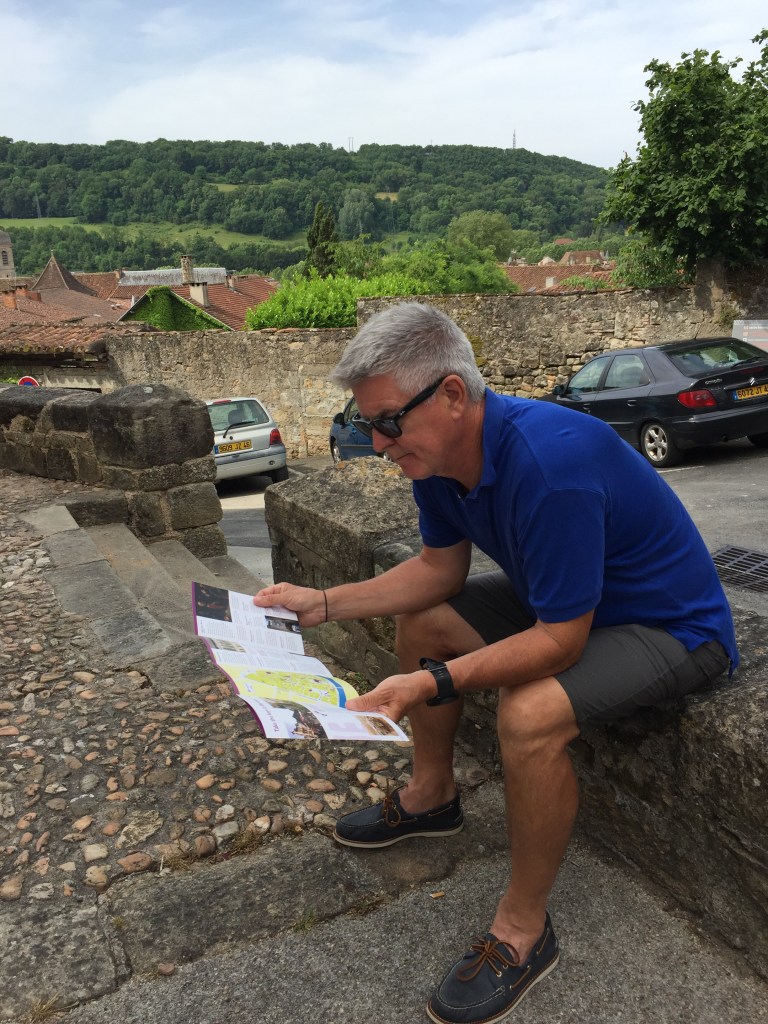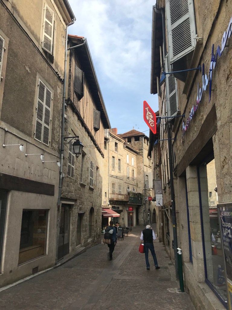 Figeac is a very pretty town, the largest we’ve had for a rest day since Le Puy. It grew up around an abbey built in the 9th century and has examples of buildings from the 12th and 13th centuries and then 17th and 18th centuries – in between apparently the town fell on hard times!