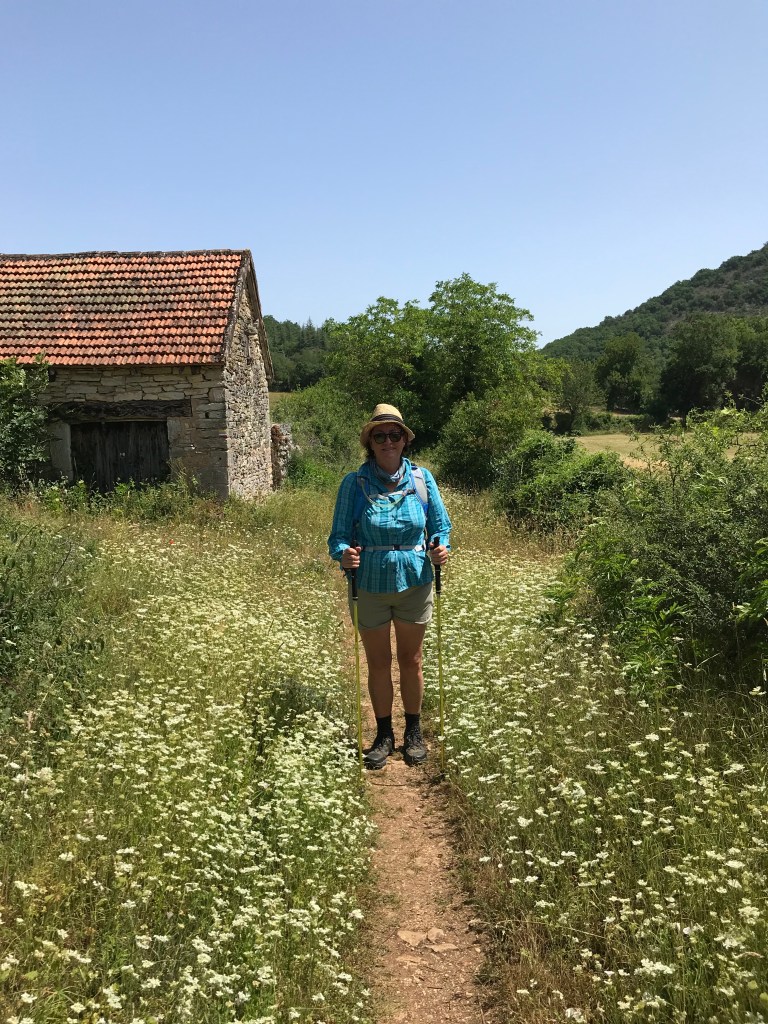 Alison’s right eyelid puffed up on Monday morning – it went down during the day but each morning since then it has become worse than the day before. We bit the bullet today and decided she needed to see a doctor – obviously this is a bit tricky for us but our kind hosts at our B&B not only booked Alison in to see their doctor (back in Figeac!) but offered to drive us to the doctor’s, from there to the pharmacy and then back to the trail. Neither Alison nor the doctor could tell what the exact cause of the swelling is but there was a fair amount of pus on the outside of the eyelid. The doctor cleaned the eyelid and she is now on antibiotics with strict instructions to see another doctor if the eyelid is not better in a couple of days.