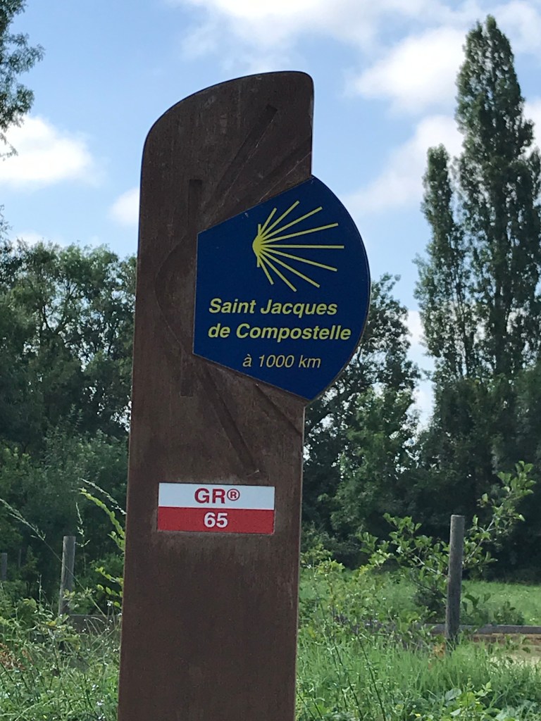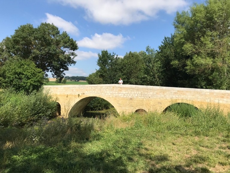 Back on the track after Larrissingle we passed the 1000km marker to Santiago and shortly after that the Pont d’Artigues, a mediaeval bridge built especially for pilgrims and world heritage listed.