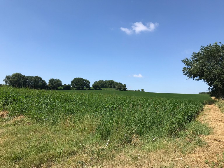 The countryside was pretty well unchanged from the last few days, lots of farms and hamlets, big fields of wheat, corn, more vines today than before and a lot of a crop that we can’t make out – beans or some kind of potato or turnip (according to Al, I would not have a clue!).
