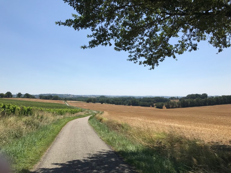 It was really a beautiful walk today, heading through the town on Condom, across and then along the river Baïse before climbing up onto a ridge to head to our next stop. Most of today’s walking was on minor sealed roads, and what wasn’t was on good unsealed paths, so we made good time.