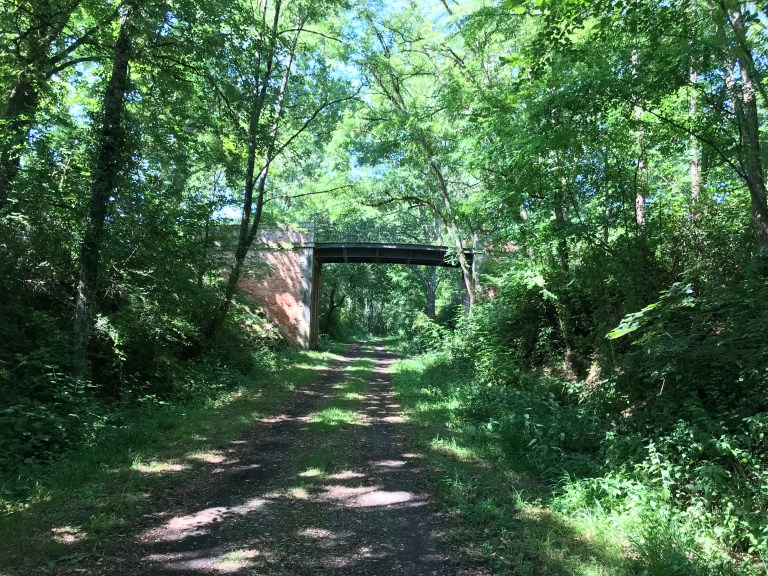 From La Motte we descended down to a very nice flat, straightish track. Not far along the track we crossed under the bridge in the photos, which struck us as very weird because it went nowhere, i.e. there was no road on either side!