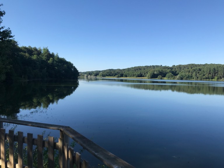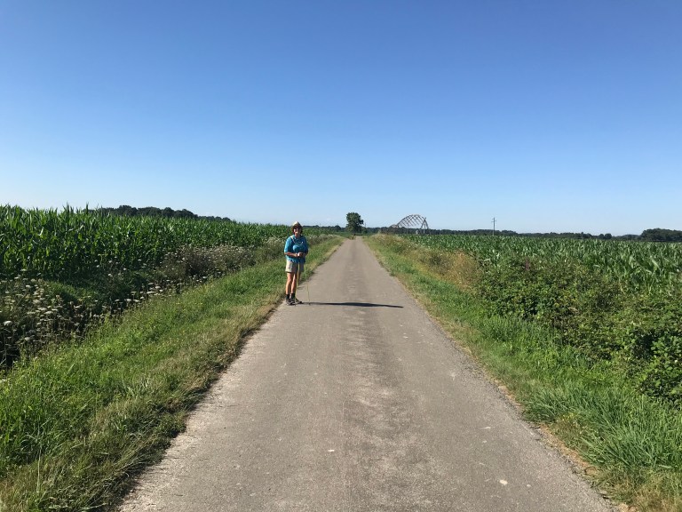 Anyway, the universe provided and we set off with a real spring in our step, first past a very nice lake, lac du Brousseau, and then through acres and acres and acres of corn. You can see from the photos that the sections were long, flat and straight, but the surface was pretty good and we made great time, stopping first after a couple of hours for morning tea and then after four hours for lunch. It was obviously our lucky day, because both times a picnic area appeared at the right time!