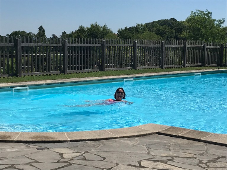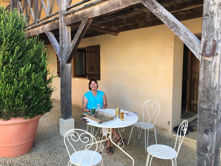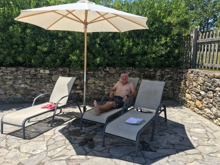 Our Canadian friends caught us at both stops and after the second one we walked together again into Miramont-Sensaqc. It is a small town and we’re all staying at the same chambres d’hote, which is 700m down a road just before town they hadn’t had the same luck with food so they headed into town while we went straight to the property, which is absolutely fantastic! We had a drink and a swim in the pool before relaxing for the afternoon, so feeling good after what turned out to be a great day’s walking!