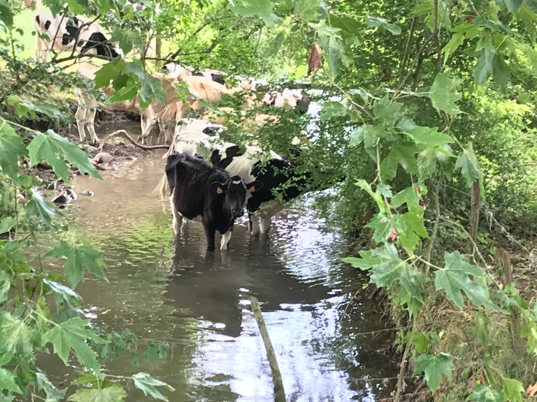 Last day of this chemin/camino/walk and a very nice one! We got away early because the forecast was for a very hot day (37 or 39C), leaving the farm we stayed at just after 7:30am. The Canadian couple that we have been seeing at many of our stops were at the same place last night (as they were the night before) and we had a very nice dinner together again but the flies were a bit much, both at dinner and breakfast! Our guide book is a fair bit worse for wear and tear having been used as a flyswat yesterday afternoon!