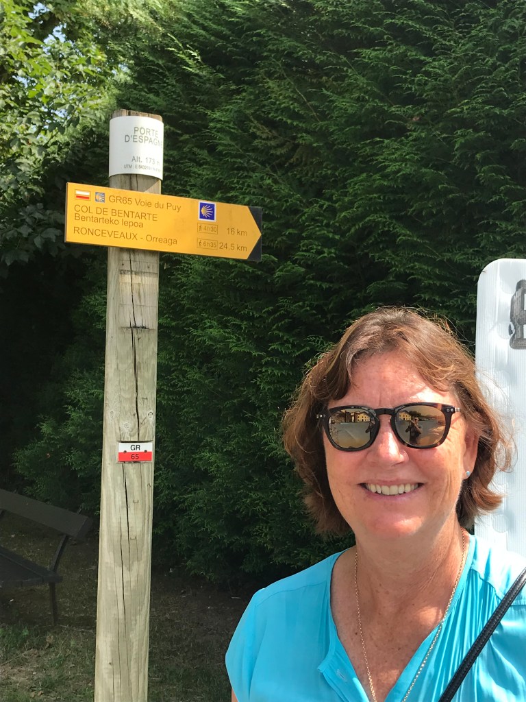 We thought we’d spend the day walking with Sonia and Peter but Peter had to sort out his feet after we were dropped off back at the trail (actually a couple of km up the trail from Larceveau😀) so we walked into St.-Jean by ourselves which was nice. We have been surprised at the solitude of the trail – we expected it would pick up as we got closer to St.-Jean but it’s probably been the opposite – we only saw two other walkers and then only as we were leaving our morning coffee.