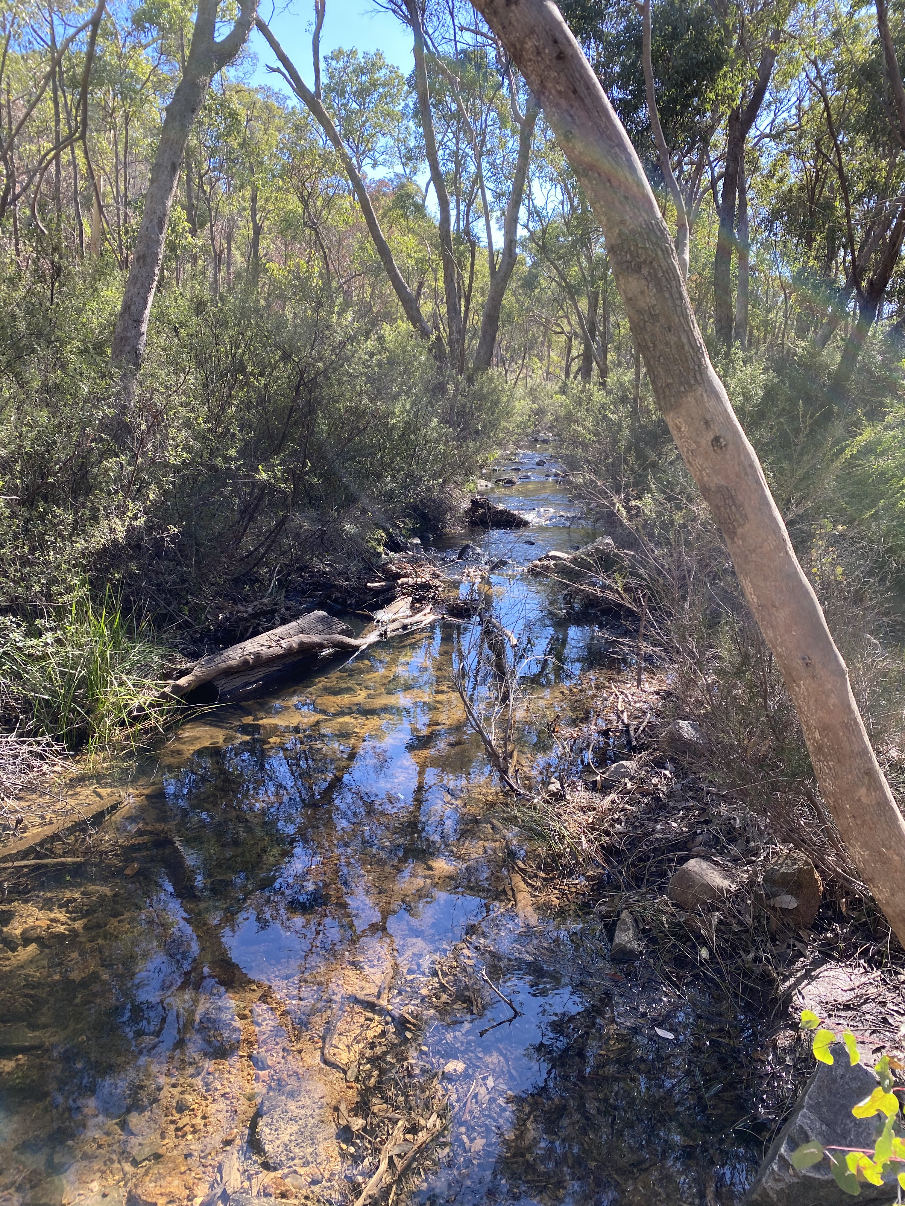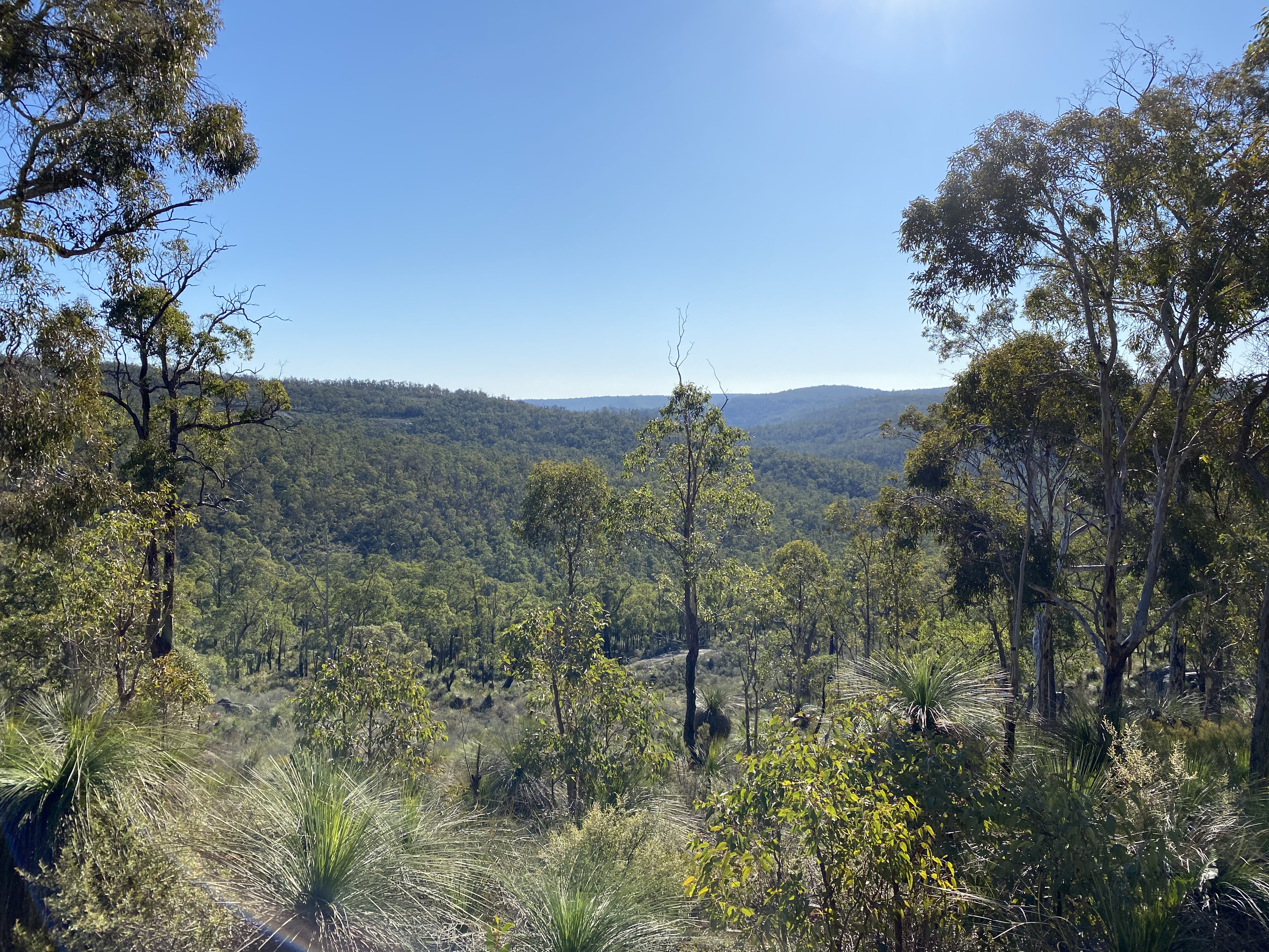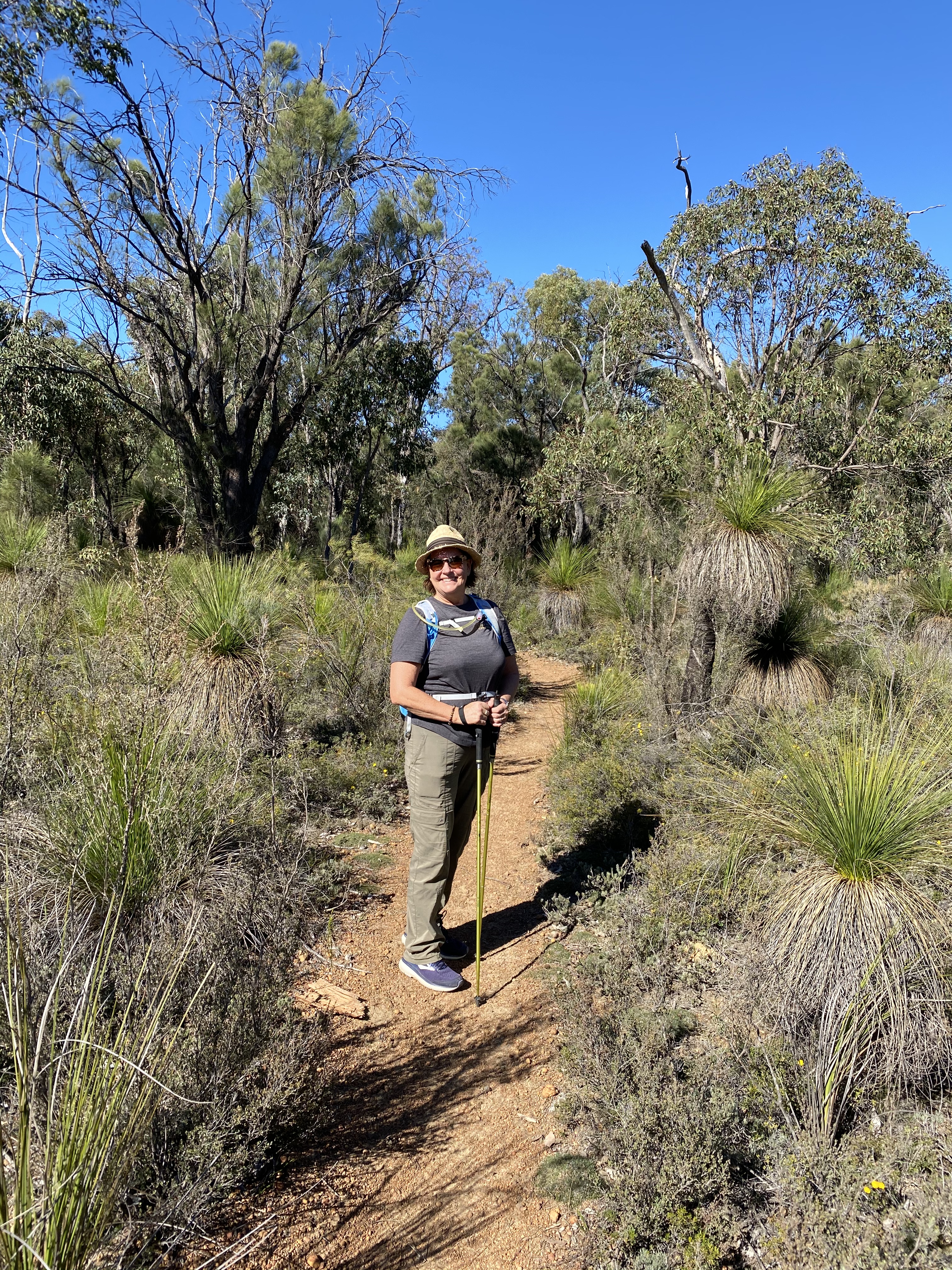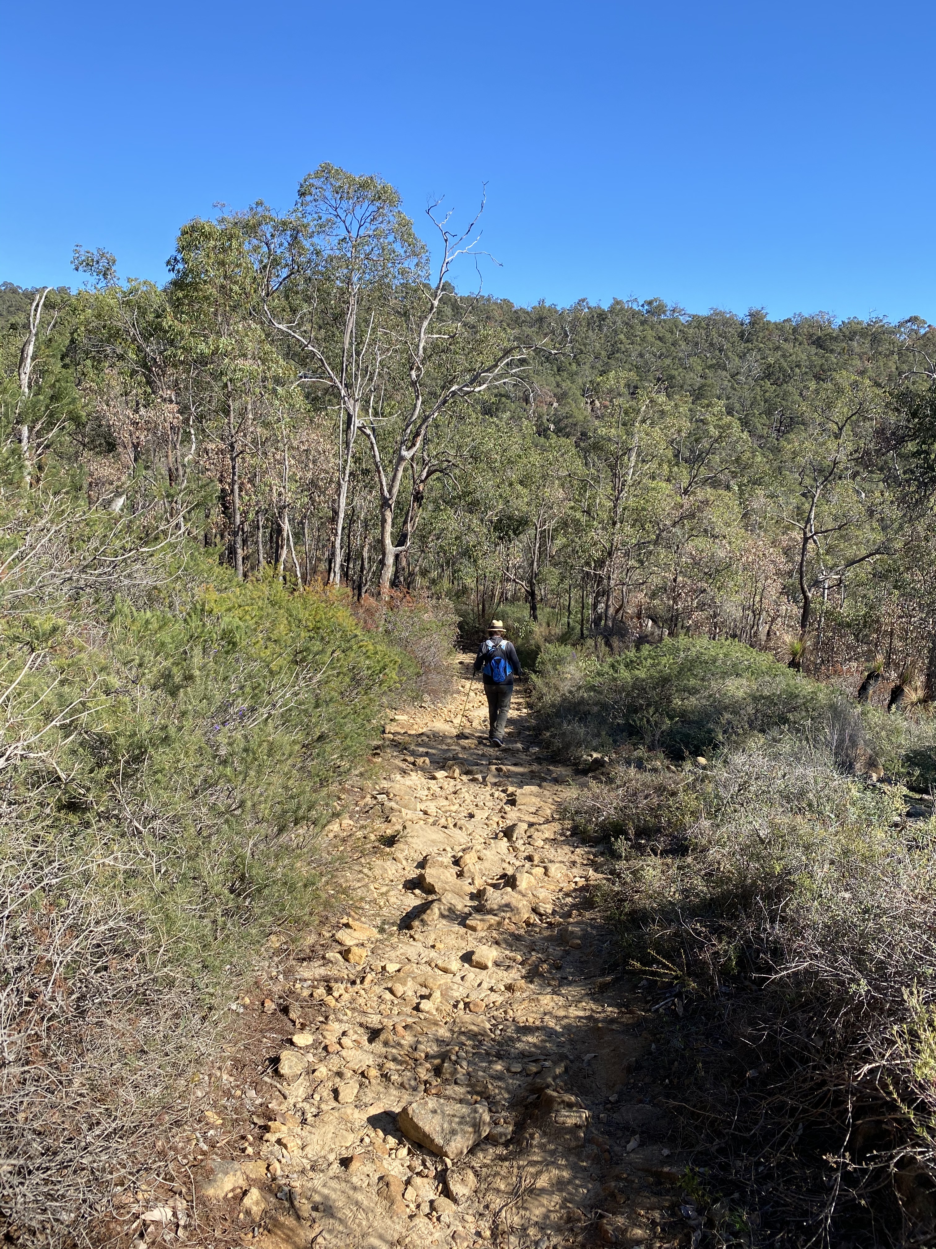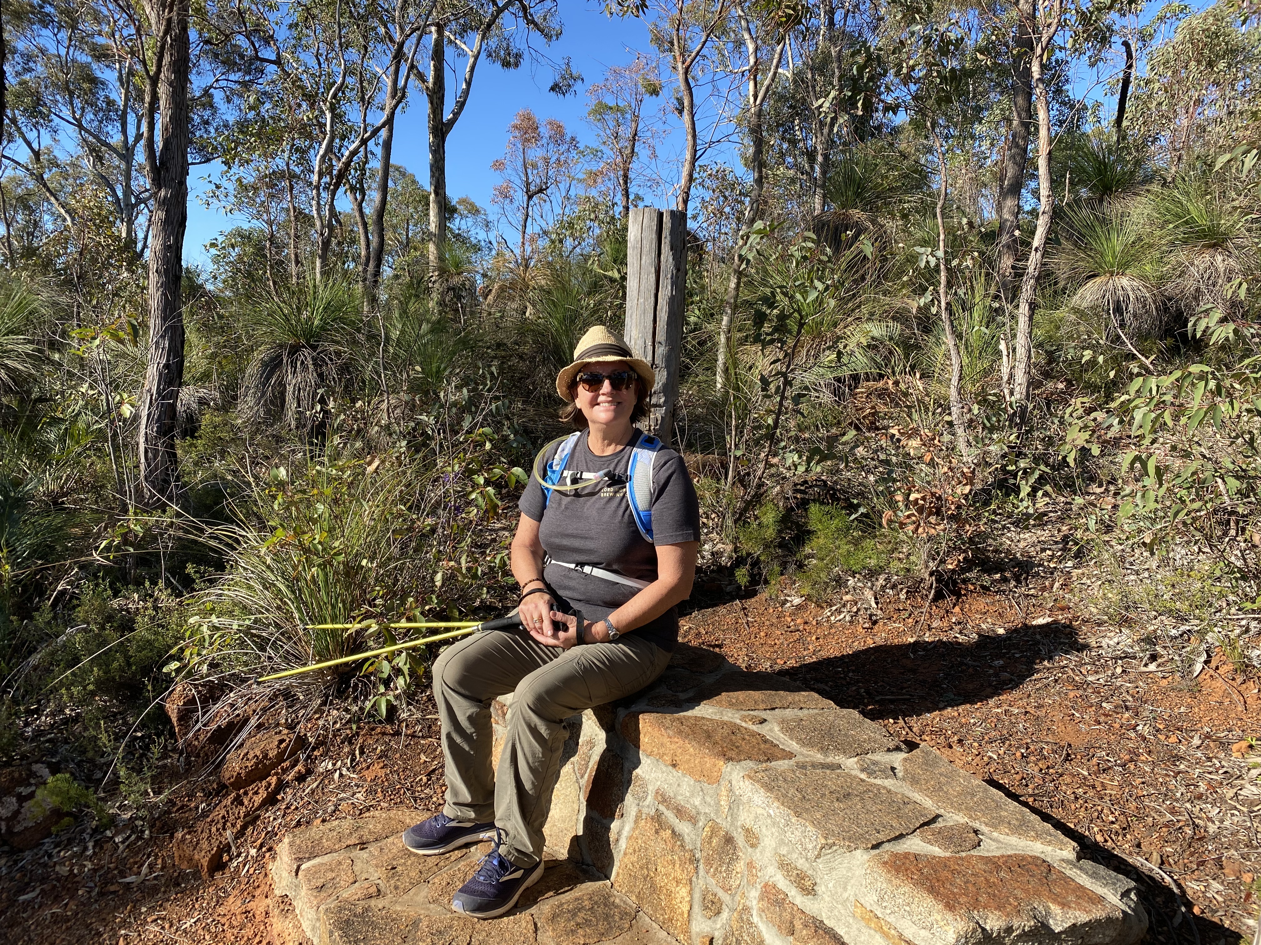 The track goes through a little bit of bush (for effect I think!) then through suburban Kalamunda and then next to the golf course (which I didn’t realise at the time) before entering the national park and descending into Piesse Brook Valley. It was very up and down for the 5 kms or so – lots of steps and rocks to contend with – and we made very slow progress, although the views from the ridges were great!