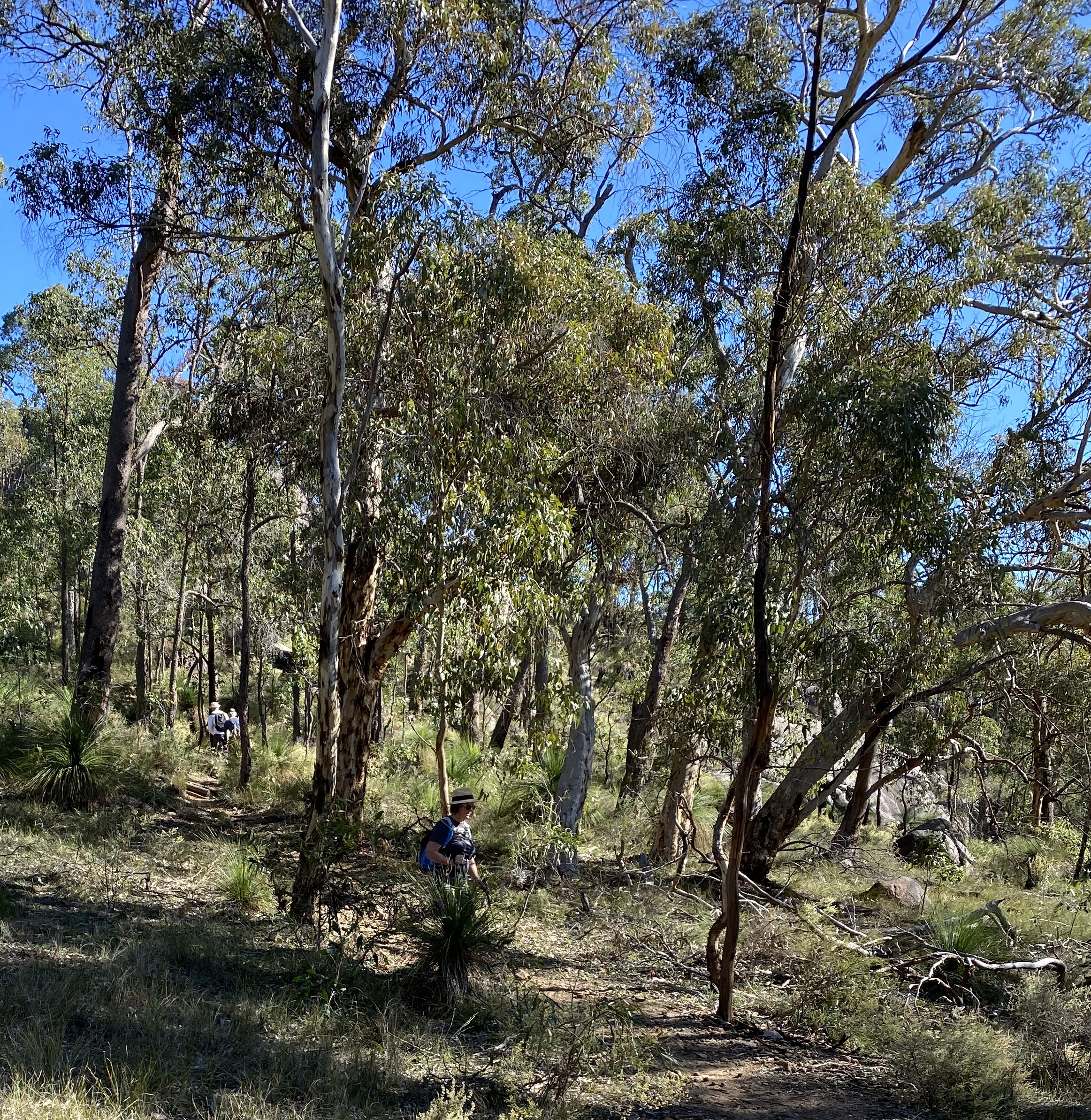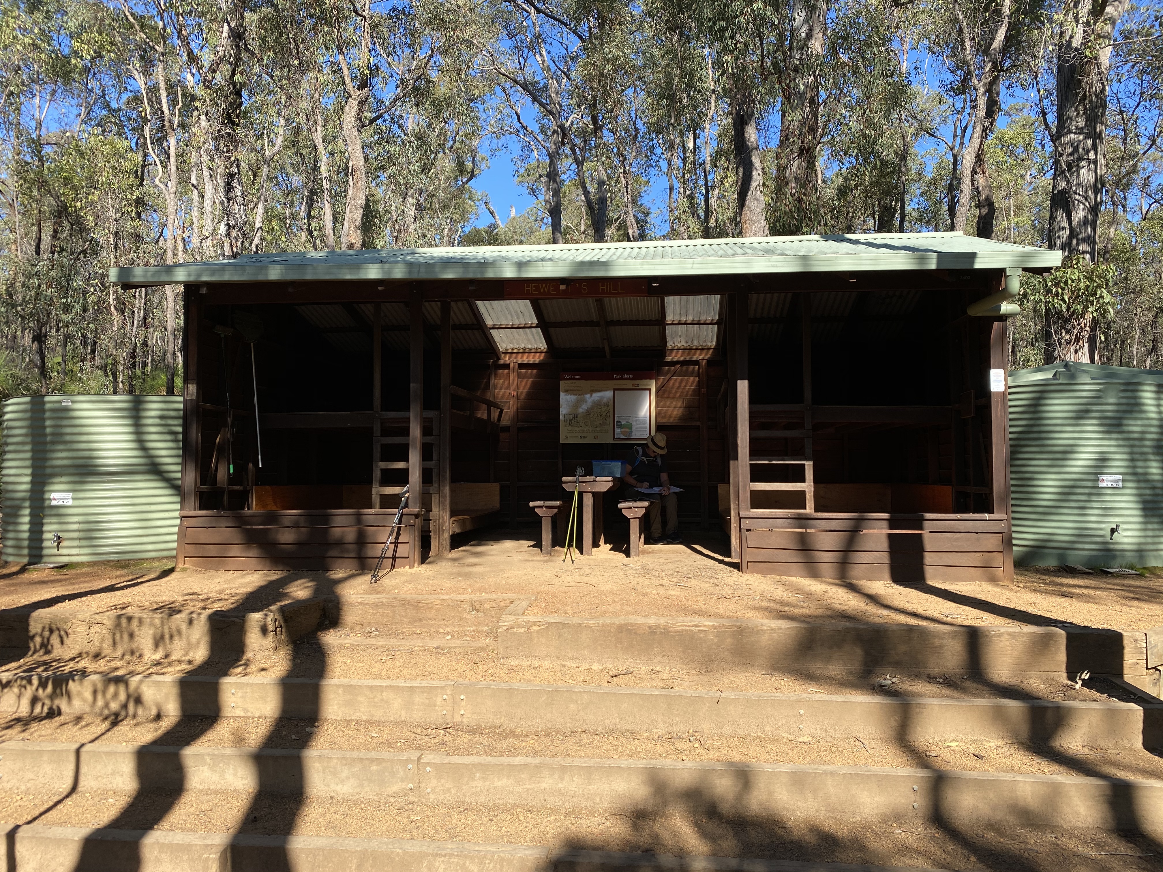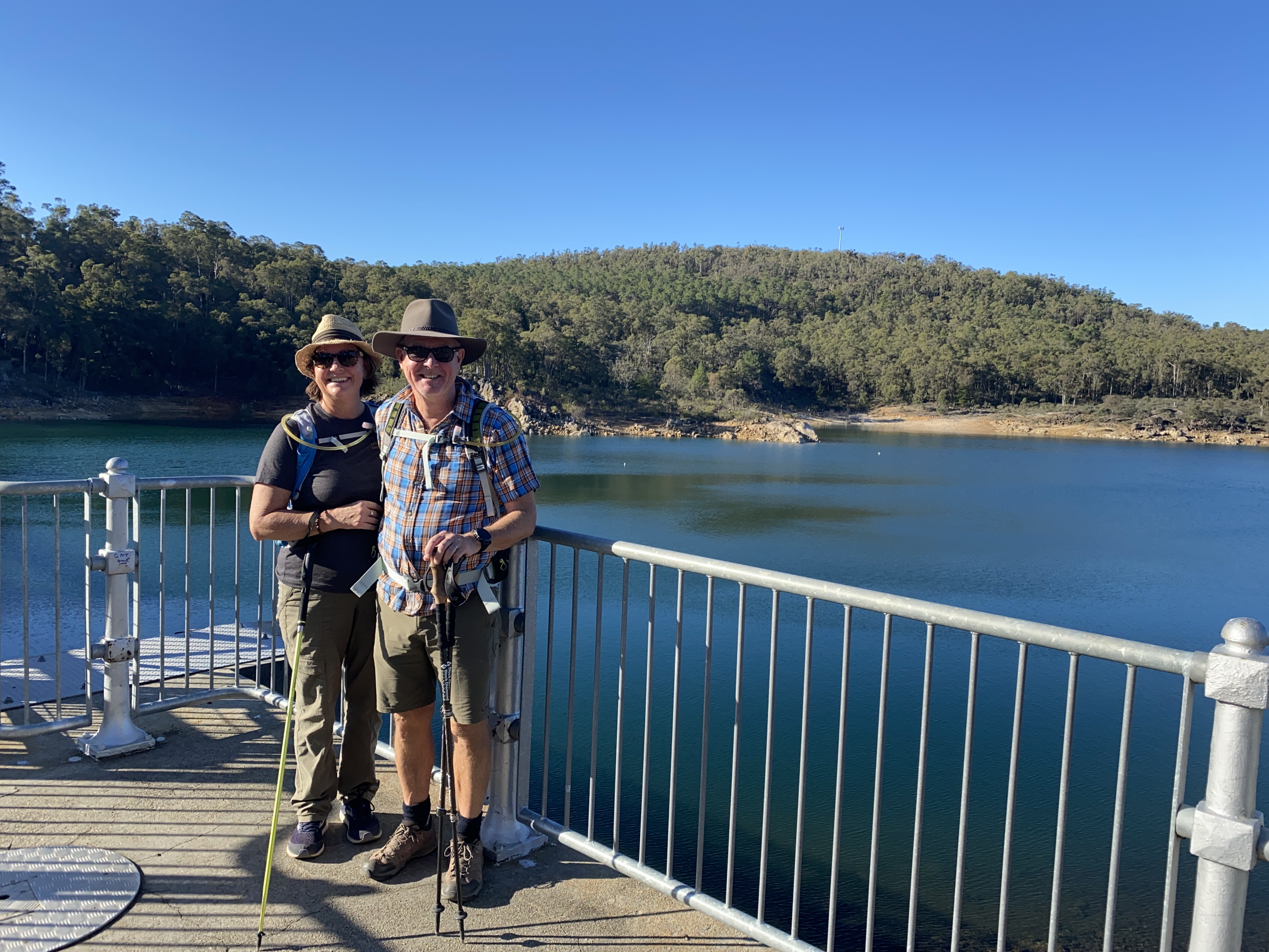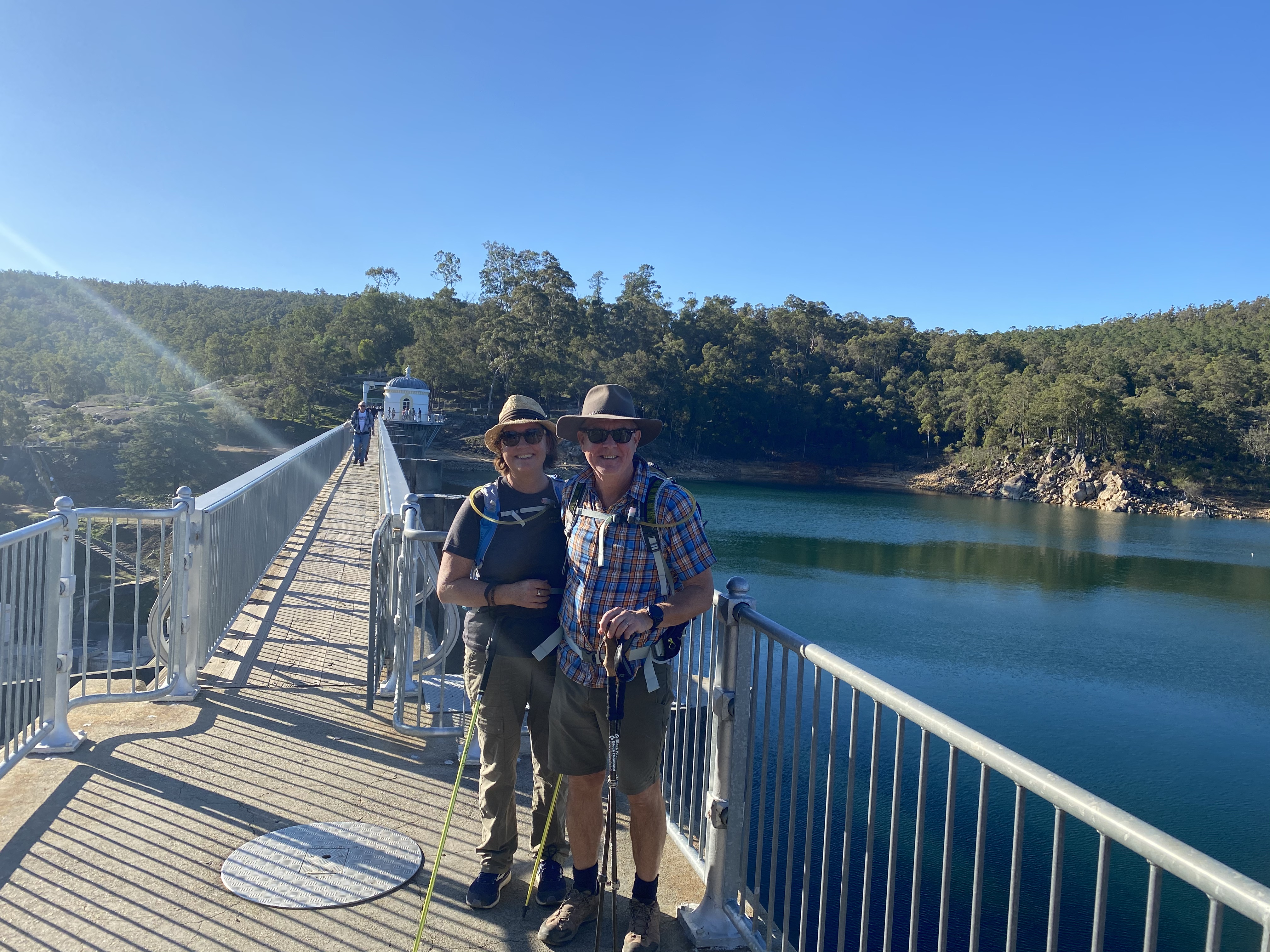 Even though we’d only walked 8 kms we were feeling very leg-weary, not nearly as fit as we thought we were. However the tracks were good and we got a bit of rhythm going and made good time, first to Hewitt’s Hill hut, and then onto Mundaring Weir and the Mundaring Weir Hotel for a beer each (problem with having to drive – only one beer!) at just over 15km. Again, fabulous views from the ridges and peaks.