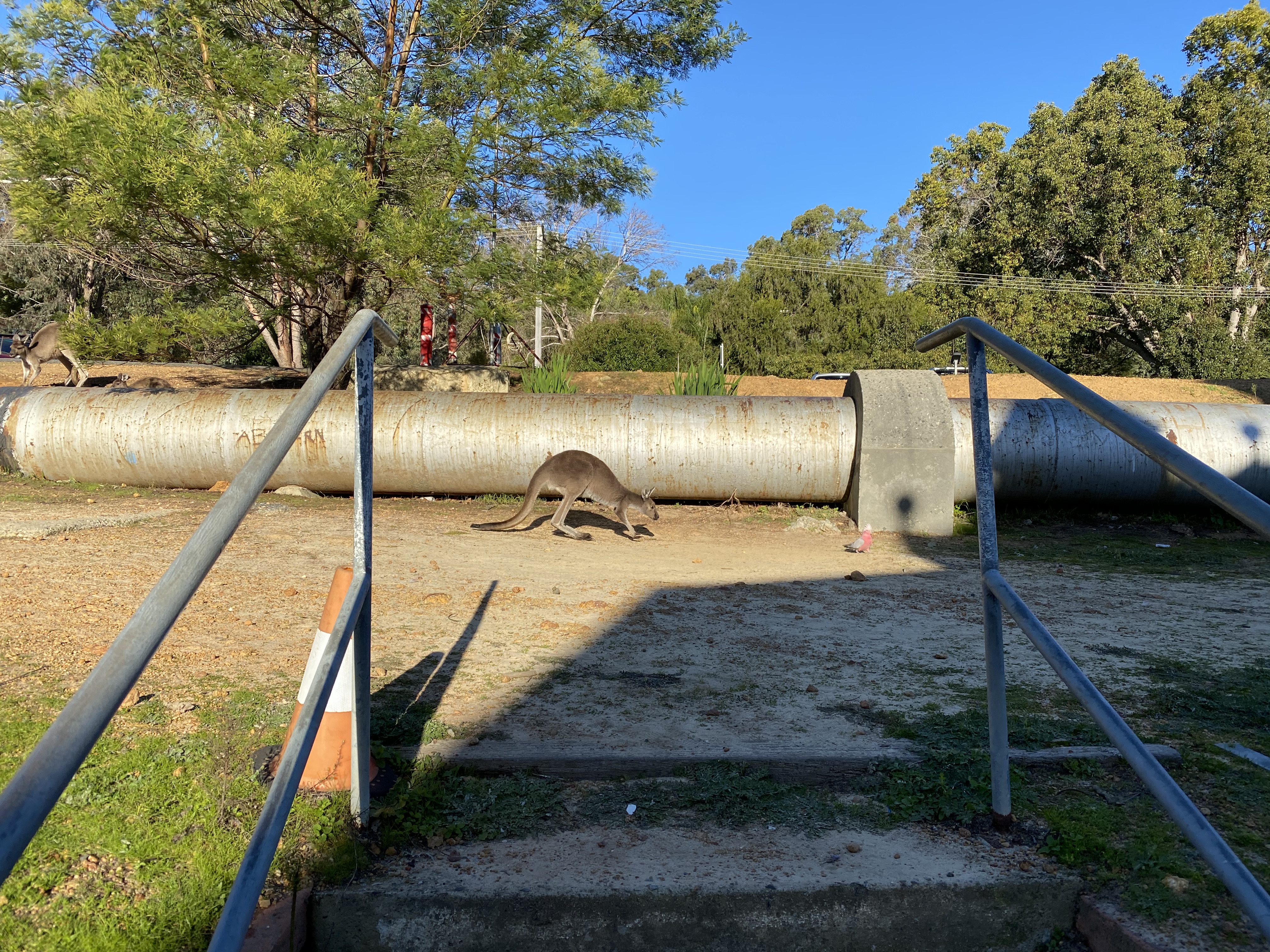 We crossed the Piesse Brook after about 4 km and then headed up again, after which the track improved and levelled out. Just after 8km we made it to the Calamunda Camel farm where we stopped for lunch – we arrived just as a group of about 50 walkers were leaving the farm headed back towards Kalamunda!