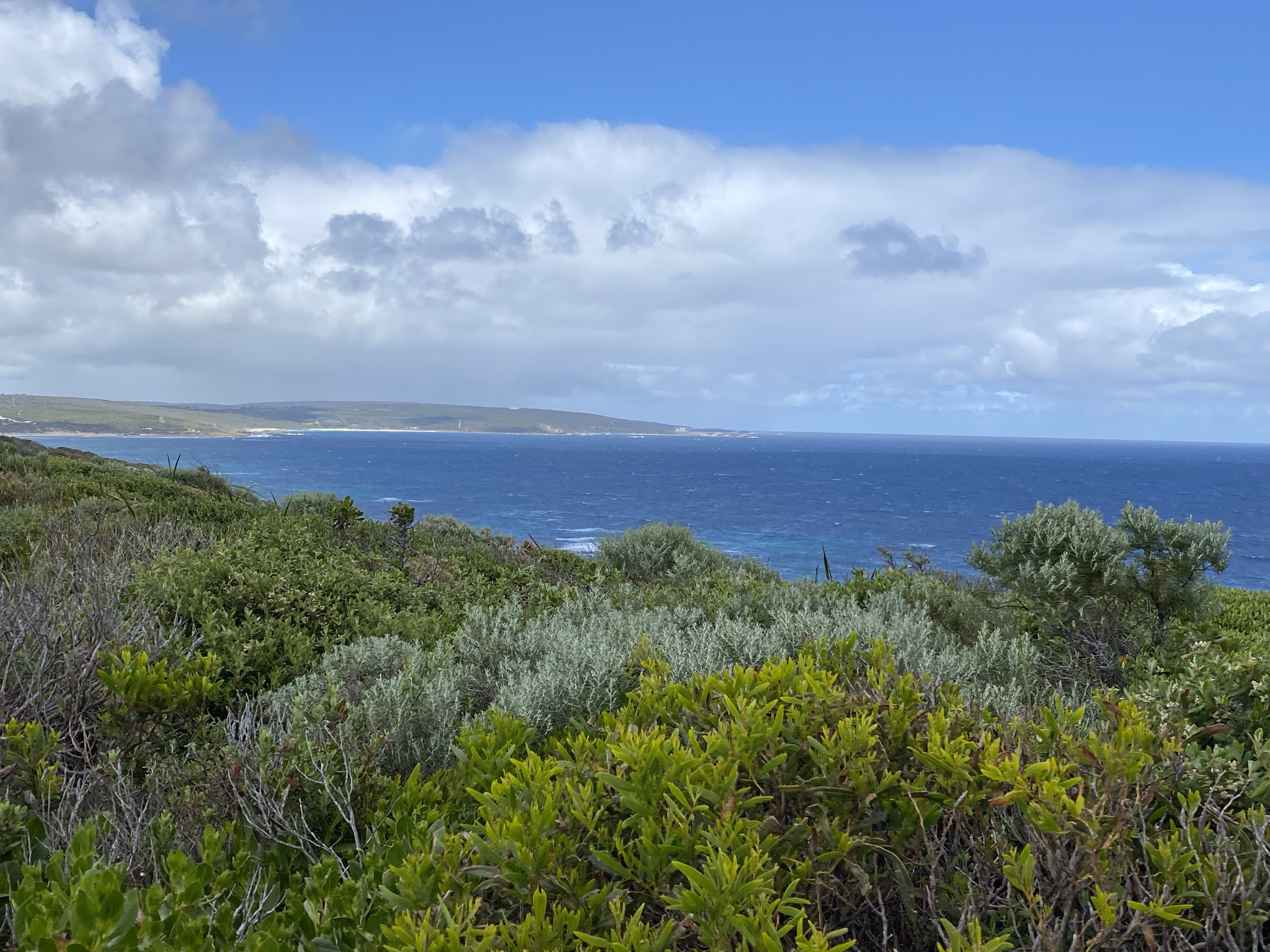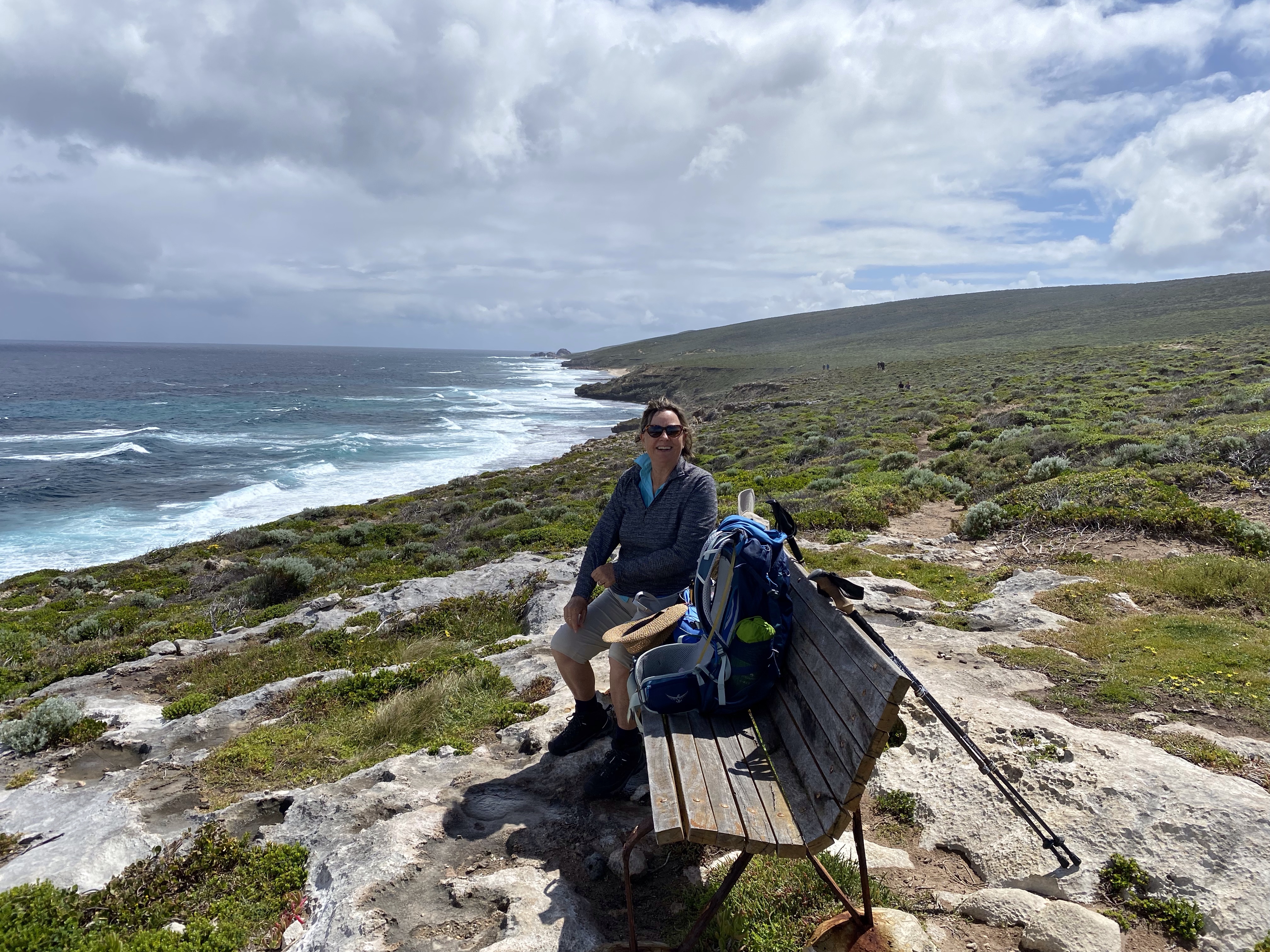 Although we thought we would sleep in, given the short day today and no pickups necessary, we were on the road at about 10 past 9 after a lovely breakfast and with a very big packed lunch. We walked straight out the western side of the hotel, through a lovely garden, and bit of suburbia and 1 1/2 km later were on the C2C, having avoided the walk along Yallingup beach! From there we made great time past Mount Duckworth campsite along a wide trail before stopping, after nearly 5km, for a break and a snack. There haven’t been a lot of seats along the track but those that are all face into the breeze, and can be quite cold!
