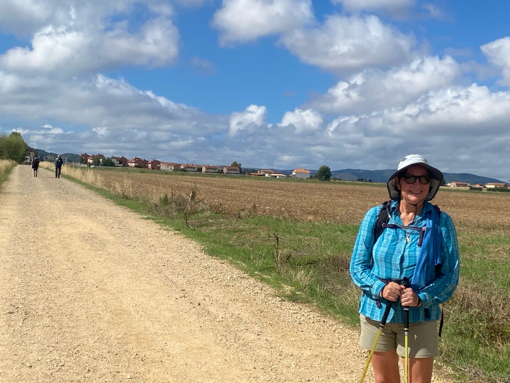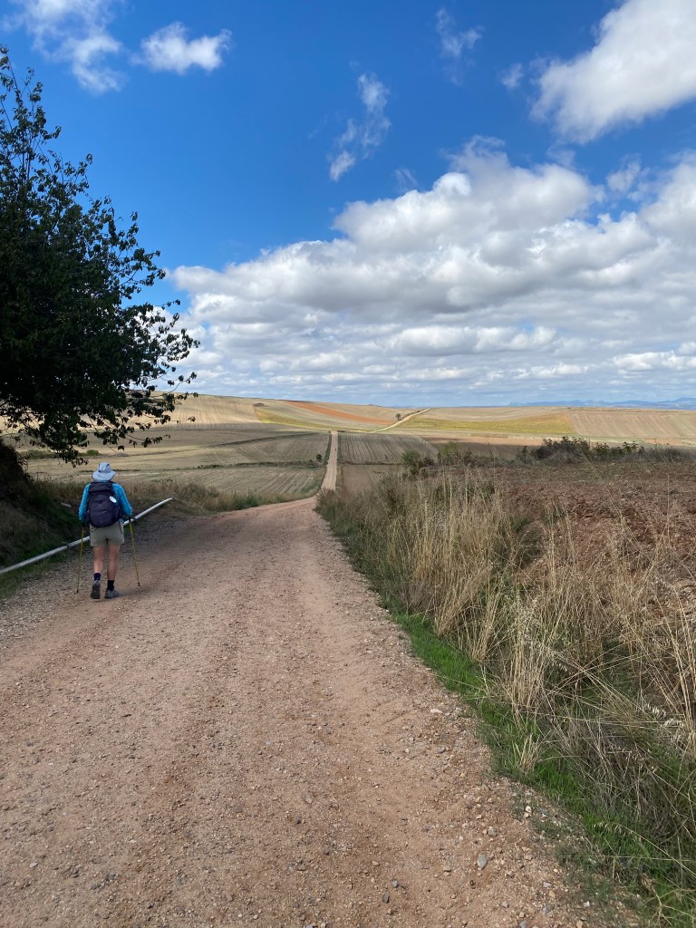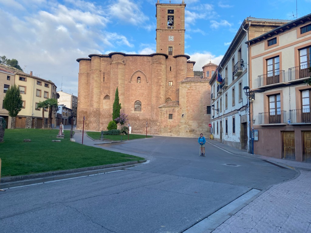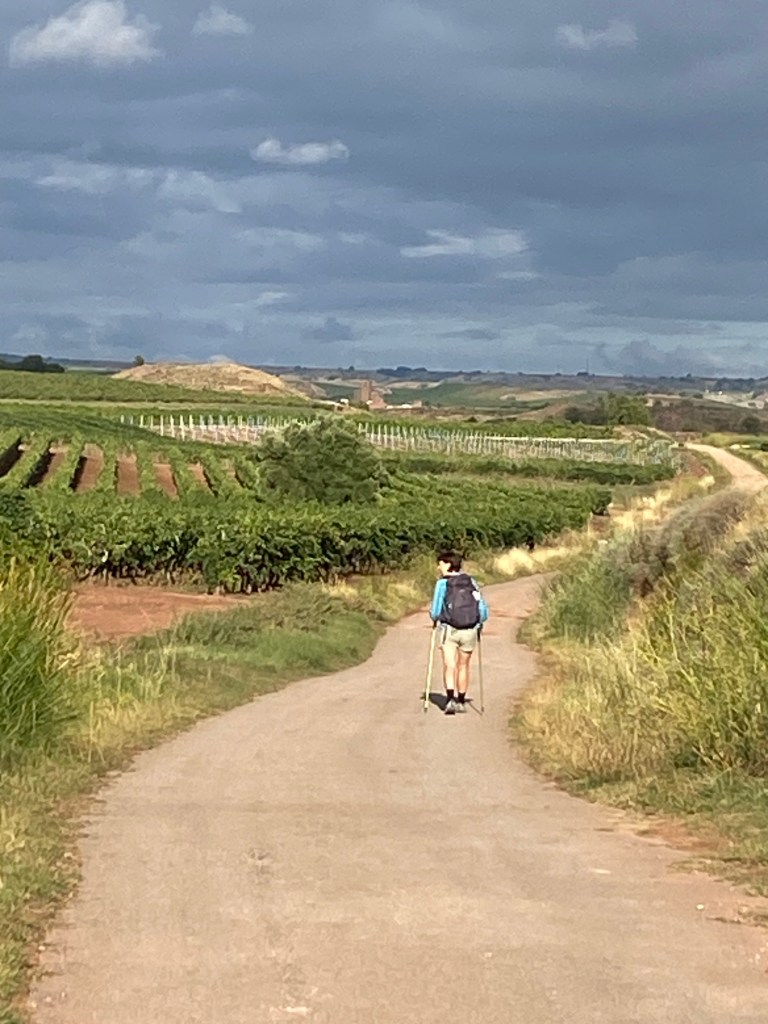 Nevertheless, today was a great day’s walk, on good paths through vineyards bursting with fruit in the morning and gradually changing through the day to grain and sunflowers as we reach the western edge of the Rioja region. We were also able to make better time due to a combination of Alison’s blisters getting better, much cooler weather in the afternoon and very good roads, although the latter deteriorated as we got closer to Santo Domingo.