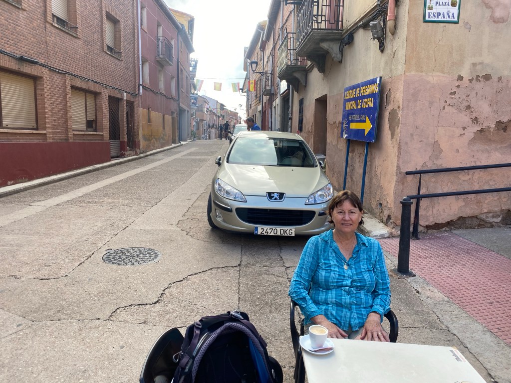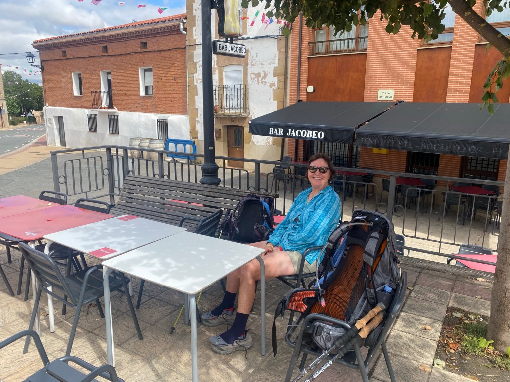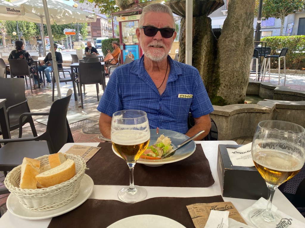 We stopped for a coffee in the small village of Azofra and headed towards Cirueña for lunch. Unfortunately the restaurant at the golf club, which welcomes peregrinos, did not start lunch until 1:30pm (by which time most walkers will have long passed!) and the only other place in town, Bar Jacobeo, was closed on Wednesdays. We settled for a break with some nuts and a protein bar to keep us going and reached Santo Domingo by about 2:45pm, in plenty of time for a late salad and a couple of beers!