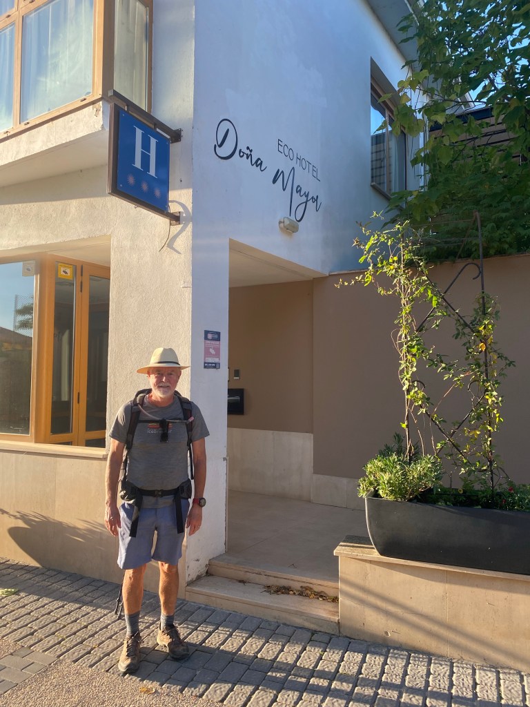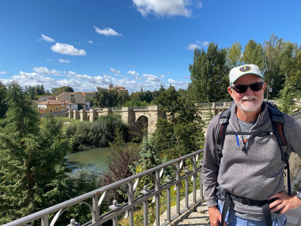 Anyway, we had another nice walk between the villages of Población and Villovieco (where we had another coffee but no photo) and again between the latter and the ermita de la Virgen del río. From there it was road or a track by the road first to Villalcázar de Sirga (town of the towpath?) where we had a lovely lunch and into and past Carrión to our accommodation, Real Monasterio San Zoilo.