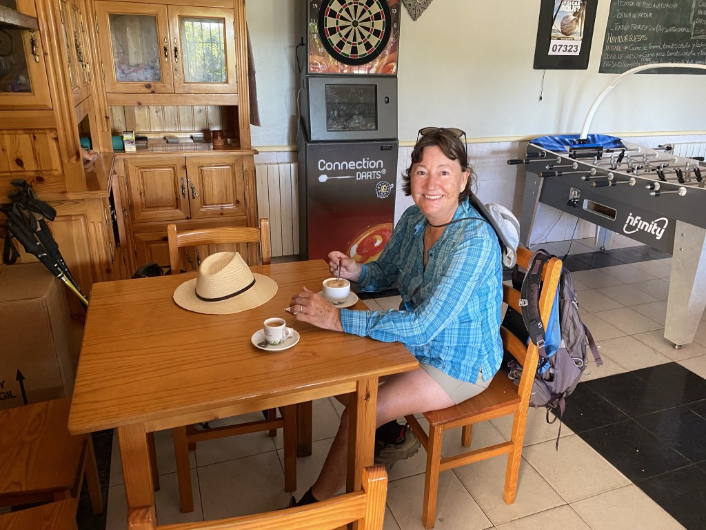 The scenery was a distinct change from the meseta before León, with trees shrubs and the occasional paddock before returning to farmland just before Mazarife. The Picos de Europa are directly behind us now and the Montes de León are starting to appear in front of us. One more day on the meseta and then we’re back in the mountains!