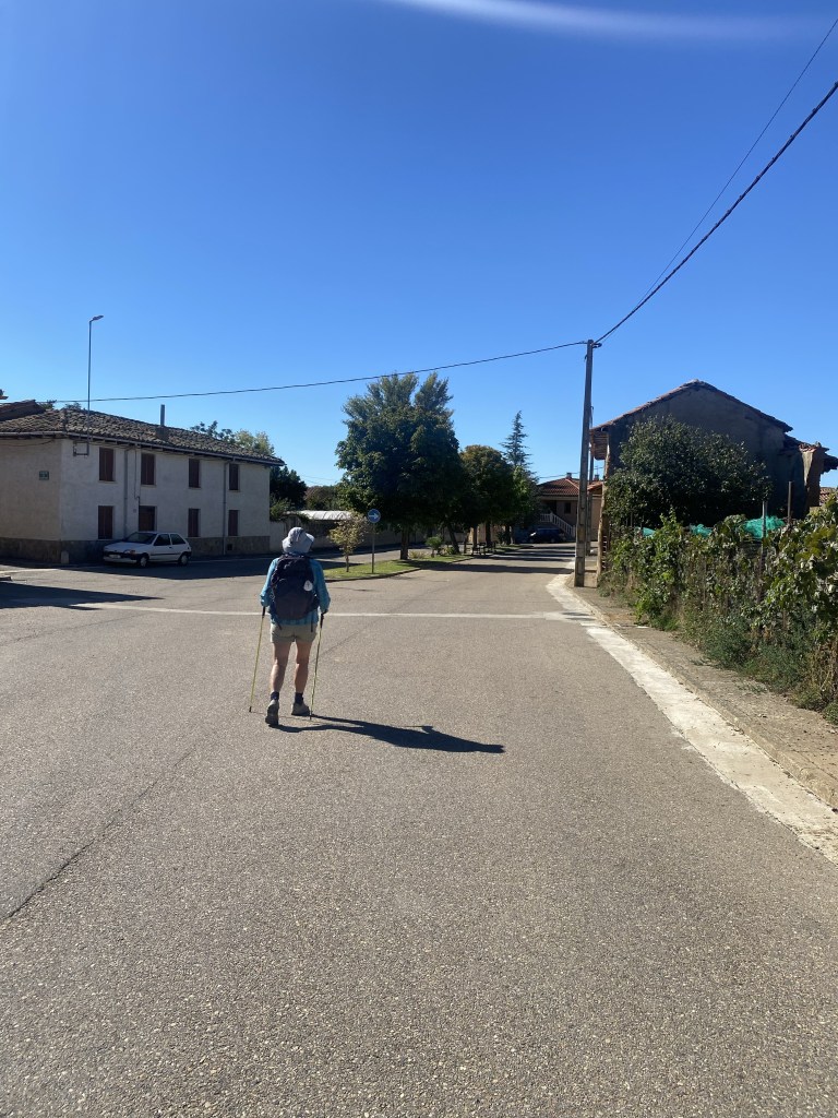 Lovely paths underfoot, a brilliant blue sky and much less monotonous scenery made it easy walking through the villages of Fresno del Camino (where we had a coffee but really only needed the toilets!) and Oncina de la Valdoncina. Slightly longer sections through to Chozas de Anahi and then our destination Villar de Mazarife.