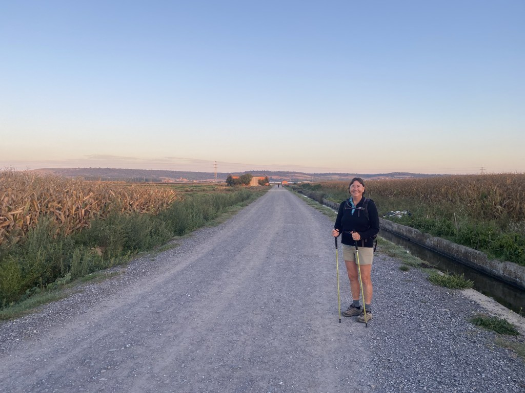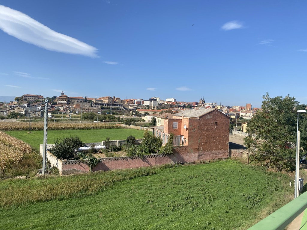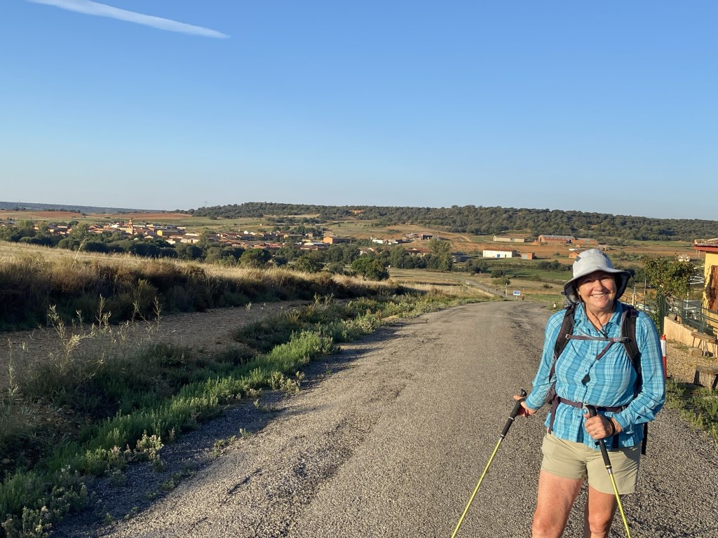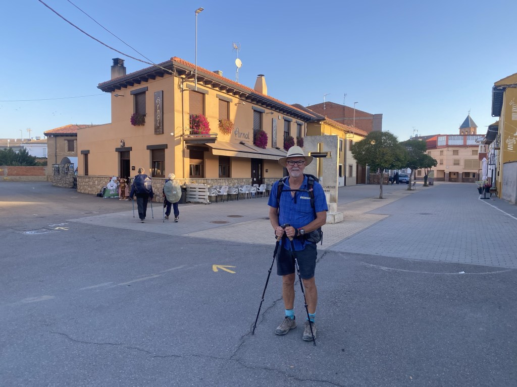 I was excited to start the section of the walk through the elevated farmland known as the meseta. From the guidebooks it sounded like a vast plain where you could find some sort of spiritual enlightenment. In reality it is a series of small villages that, with a few exceptions, are getting smaller and whose demise would be accelerated without the hundreds of walkers/pilgrims who pass through each day. Some great highlights and we enjoyed most day’s walks but today we walked back into country where the roads turn, go up and down and take us through varying hinterland!