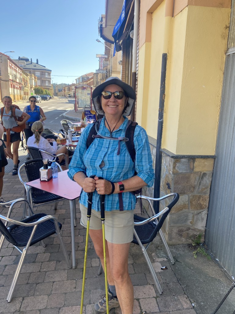 The late rising sun makes the mornings special and it was a wonderful walk out of Hospital with the sun at our backs with a vista in front of us that included hills! The first village of Villares de Órbigo came upon us fairly quickly and we passed through without stopping, thinking we could stop at the next one.