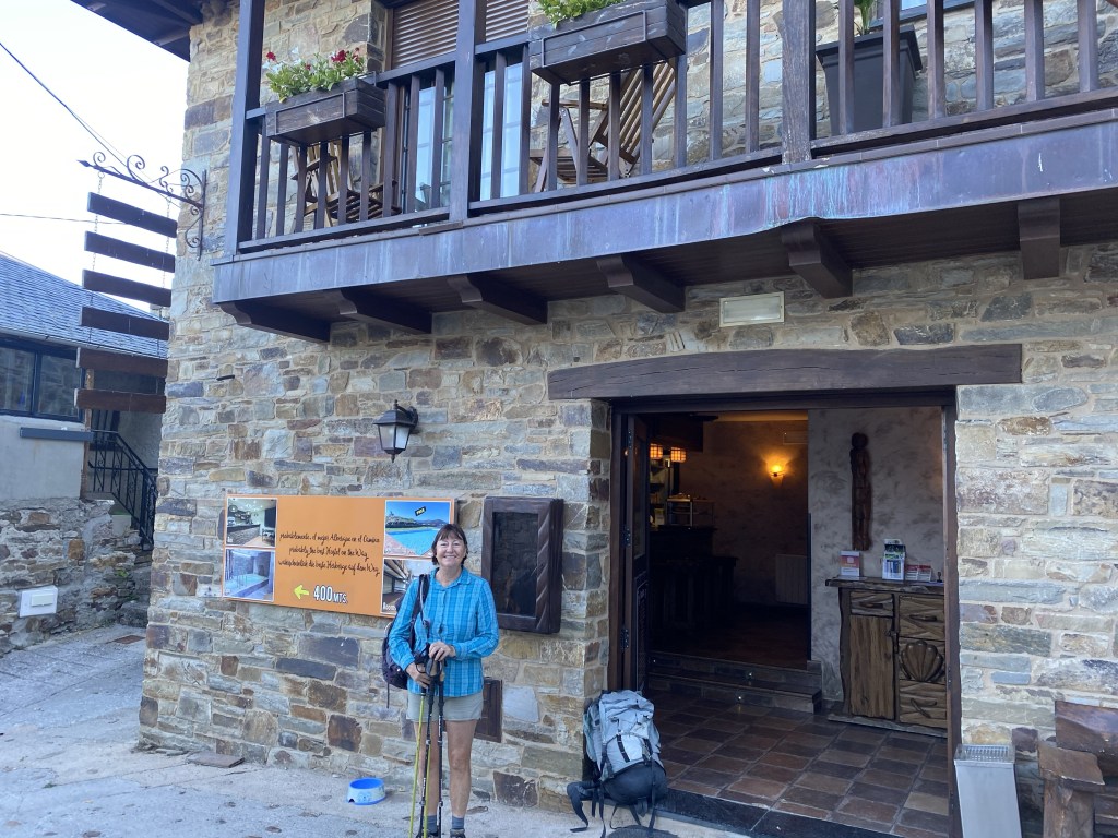 El Acebo is a beautiful little village with many quaint looking hotels and albergues, two of which bear the same name – La Casa del Peregrino. We stayed in the one in yesterday’s photo, at the top end of the village and ate dinner in the one at the bottom of the village – both obviously owned by the same people, one a boutique hotel and one an albergue.