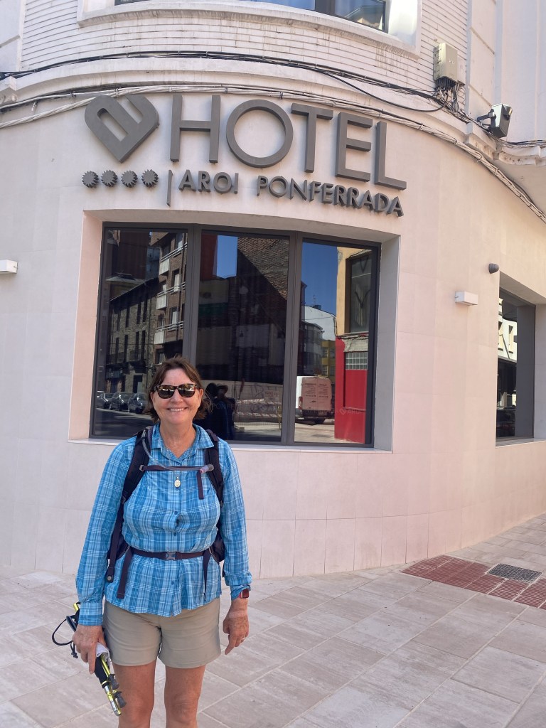 From there it was a simple walk along the road (on footpaths rather than the stone tracks we’ve encountered to date) through Molinaseca’s newer houses, over a hill and then into Ponferrada’s outer suburbs. It’s always tricky wending your way through a big city to find the hotel but, after a bit of circle work at the end, we made it!