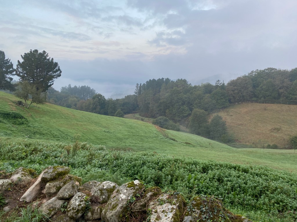 A short, steep climb from there saw us pass the village of Hospital de la Cruz and into our destination, Ventas de Narón. The site was home to a decisive battle between Moors and Christians that stopped the northward advance of the Moors. Not long after that the remains of St James (Santiago) were apparently found and, after Alfonso II confirmed their veracity (not sure how?) and built the cathedral that houses the purported remains. Not long after, he undertook the first pilgrimage from Asturias to Santiago along the route now called the Camino Primitivo, both ensuring the retreat of the Moors as more Christians populated the region and starting the tradition that continues today!