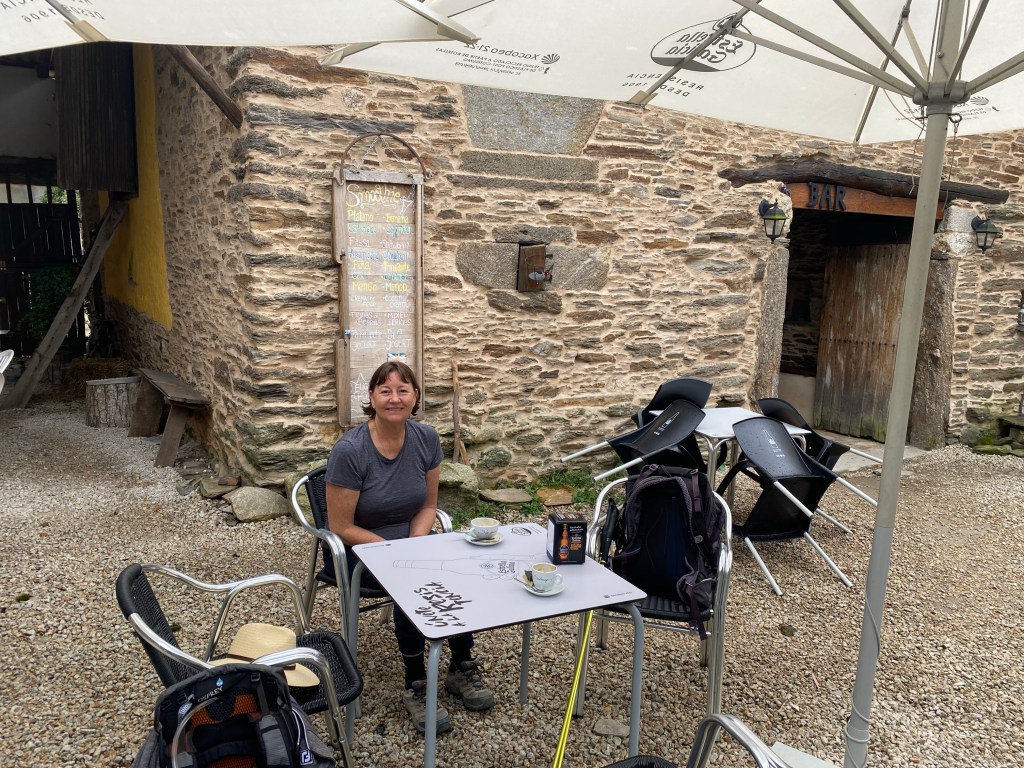 We’d had a lovely stay at Casa Morgade – lunch, dinner and breakfast all good! The morning was a descent through the clouds past many small and mostly decaying hamlets with no apparent coffee stops until we reached Vilachá just before the end of the descent into Portomarin.