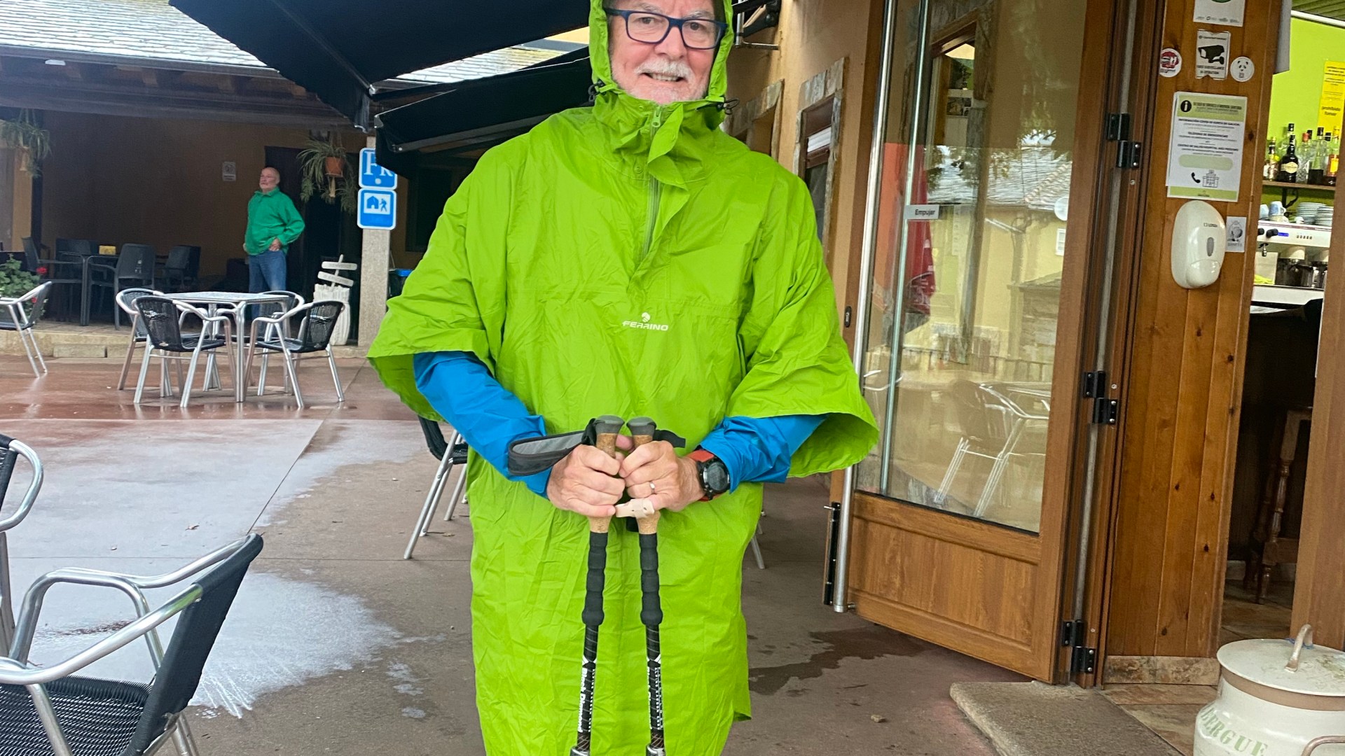 We had a taxi booked to return us to the track at 10am (it was late – about 10:15am, pretty good for Spain but still after I’d called our host to say the taxi hadn’t arrived yet) and after arriving back in Ventas we suited up for the rain and set off. On the way there we could see the trail jam packed with walkers and it continued to be that way all day.