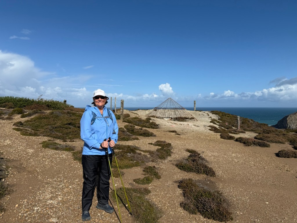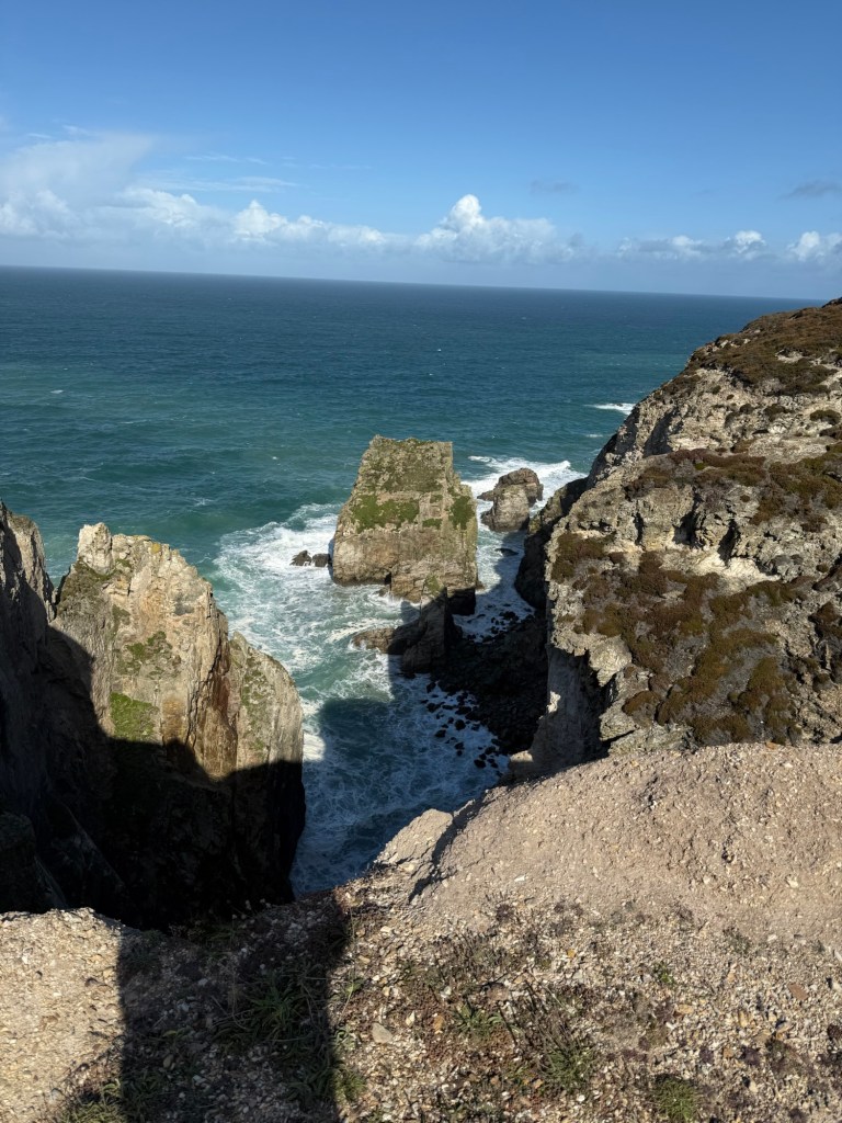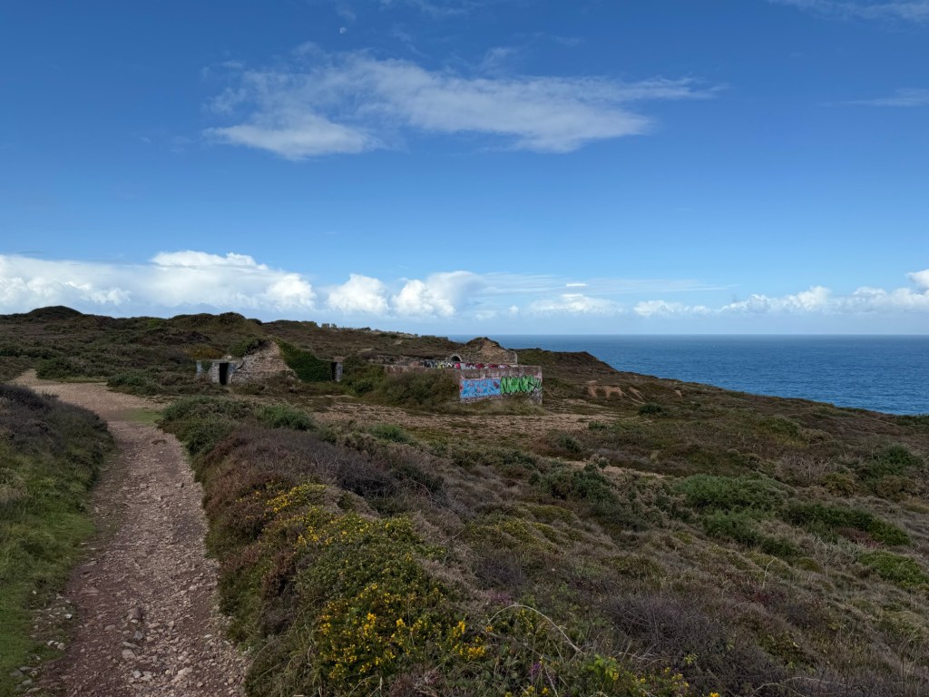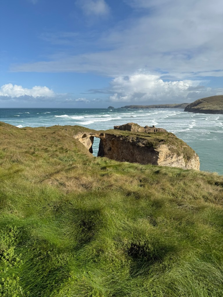 After climbing out of Perranporth, we took a slightly inland path to avoid the vertiginous path around the first headland – the path can be very narrow and with the wind a bit treacherous!