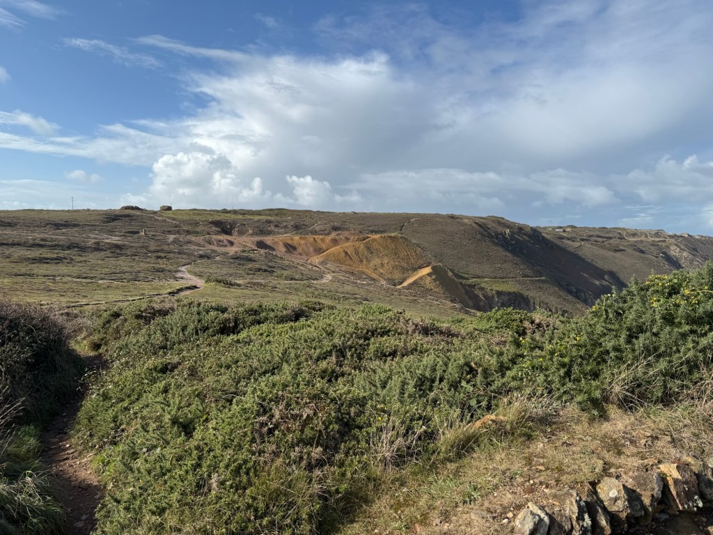 Most of today’s walk was through country affected by the tin mining industry – shafts, spoils and subsided levels – that had a totally different feel to the lovely scenery we’d had up till now.