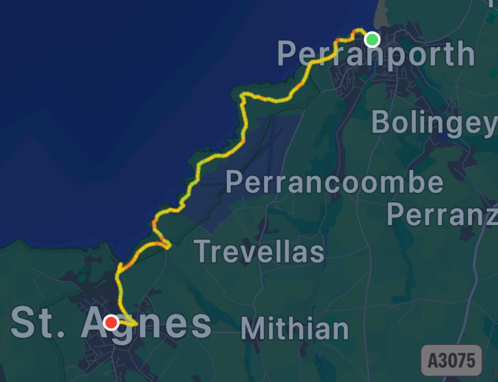 A relatively short and mostly dry walk today to St Agnes, but quite windy again.