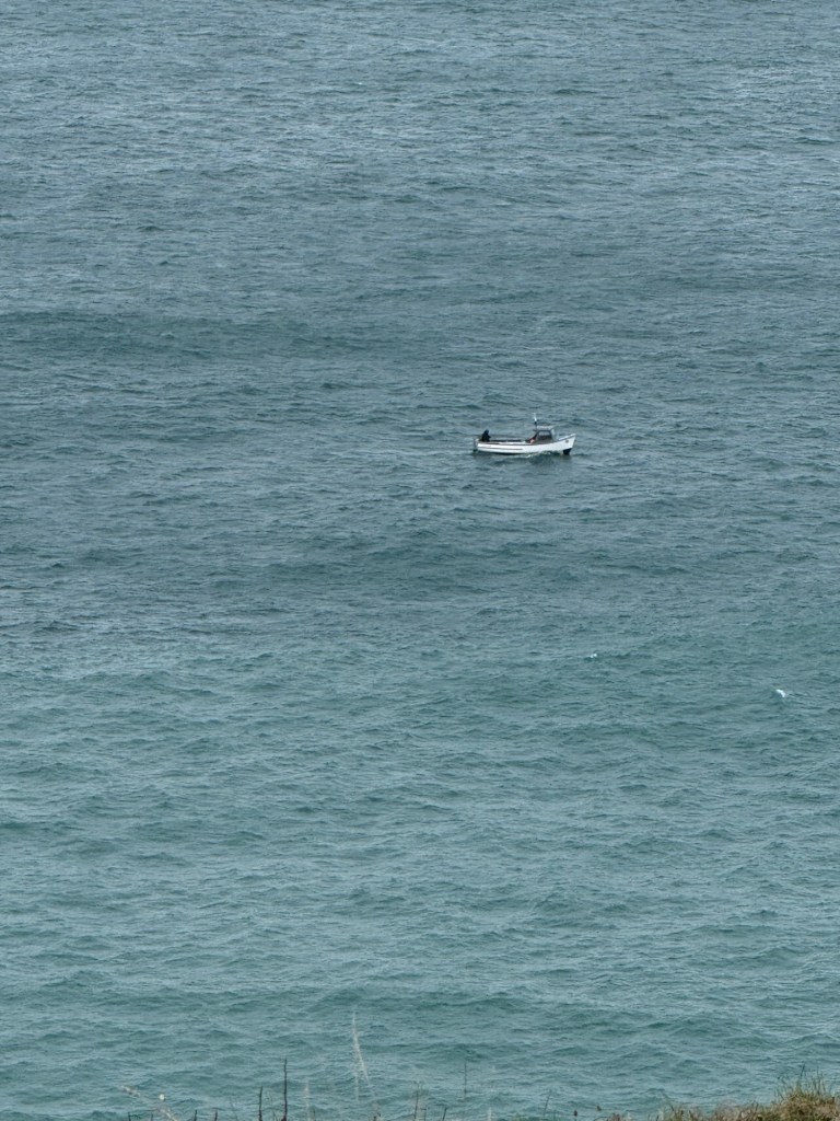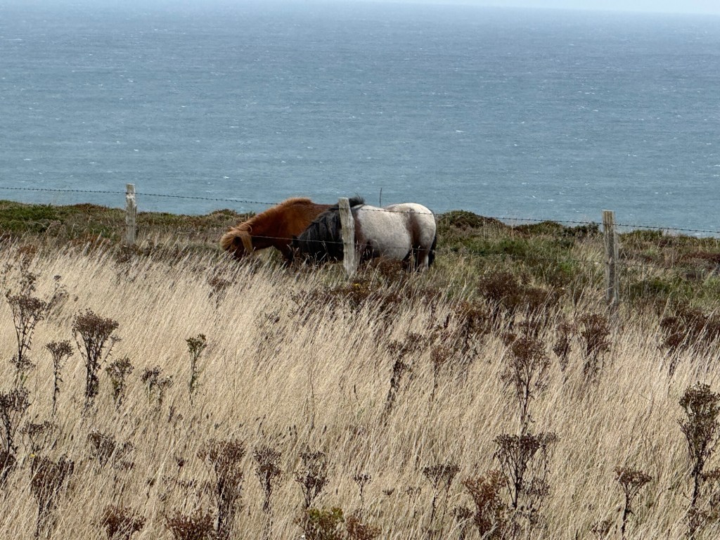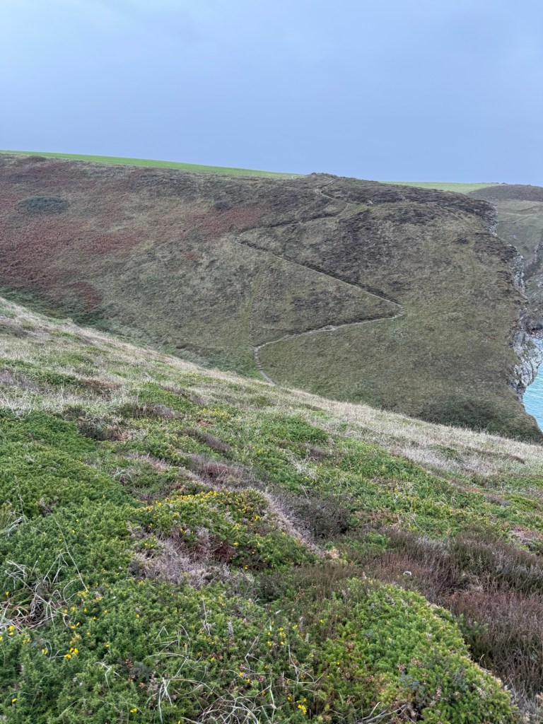 What a day! The forecast was for light rain and a breeze increasing throughout the morning to about 25 knots gusting to 39 knots. At times the path is very close to the cliffs, so I wanted to be away from them before it got too windy.