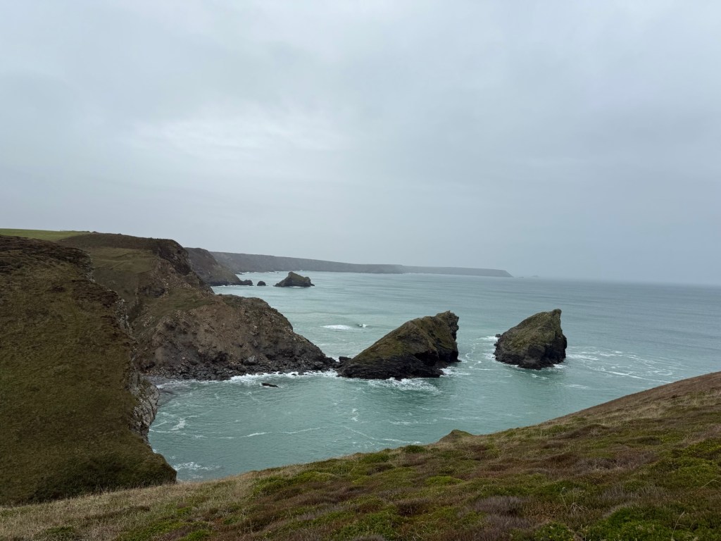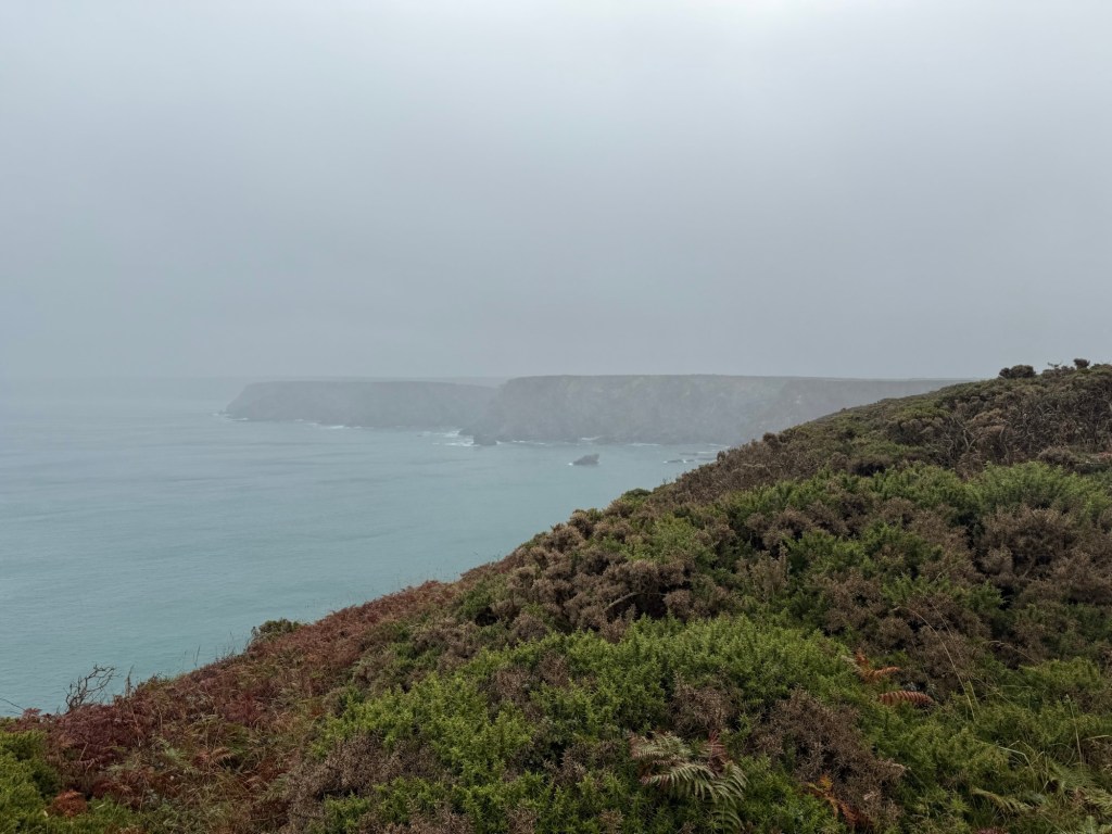 We set off in pretty good conditions, climbed up out of Portreath, got a bit lost going through a farmer’s field, did a big dip down and back up and then the rain hit us big time!