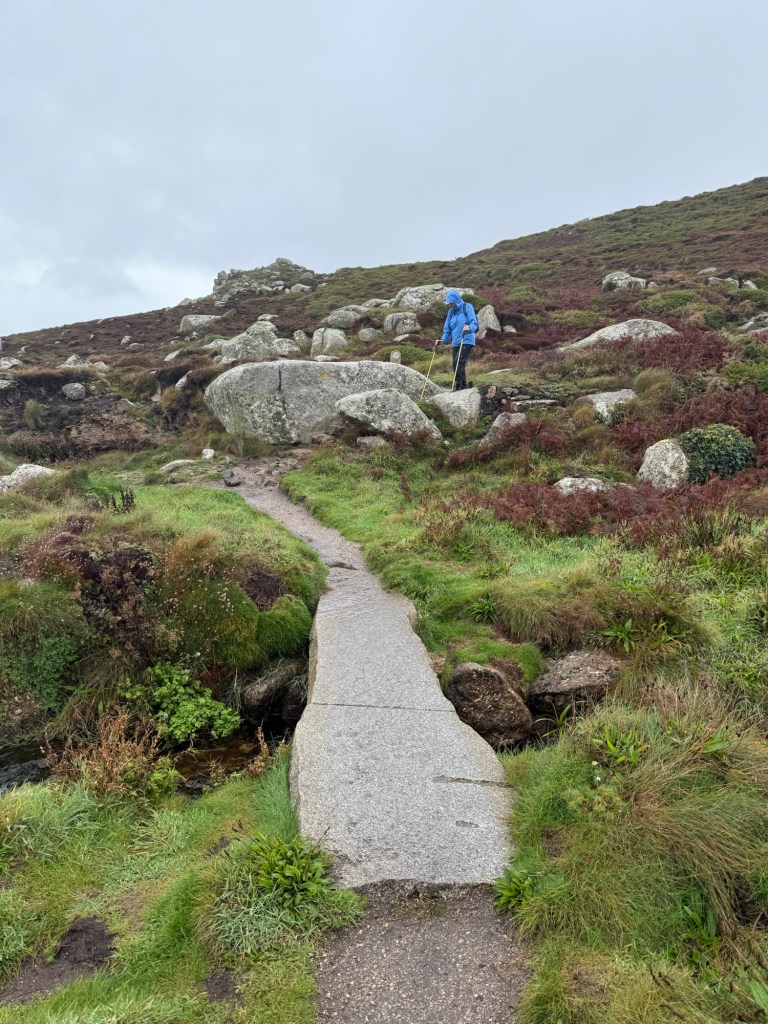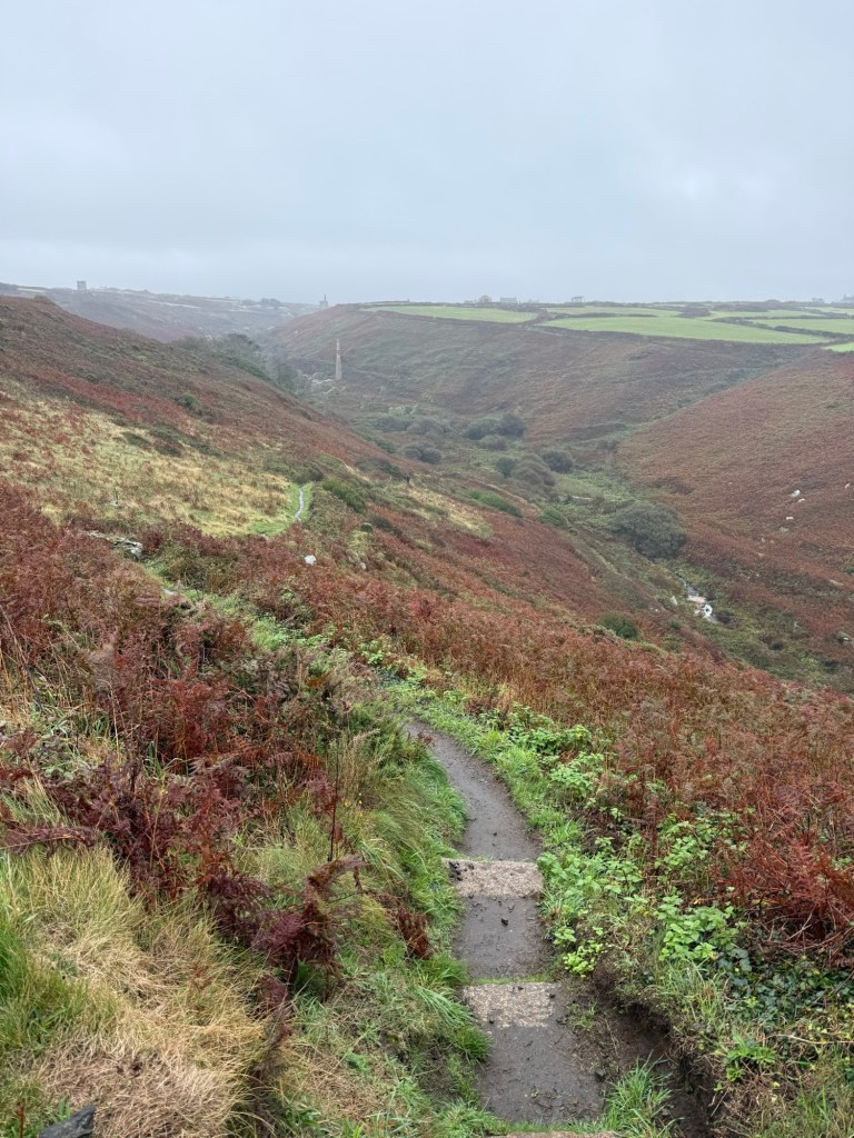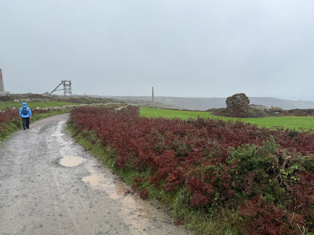 The weather was fairly kind heading toward Cape Cornwall and we were rewarded with beautiful scenery and good, albeit wet, paths. Lots of stacks and remains of Cornwall’s mining past.