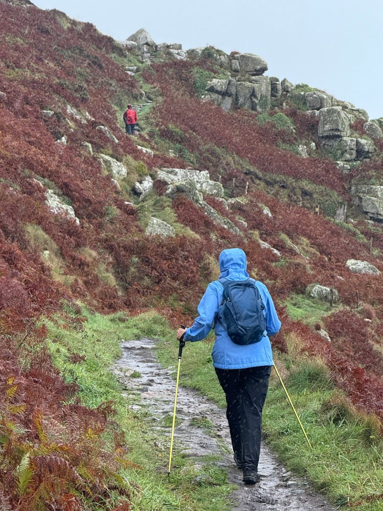 It’s going to sound crazy but it really was a great walk today, despite the rain and the “scrambles” up over headlands towards the end.