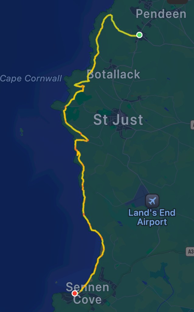 We were happy to get into Sennen Cove but definitely not as weary as our previous couple of days. Tomorrow we’ll pass Land’s End and gradually move around to be traveling east😀