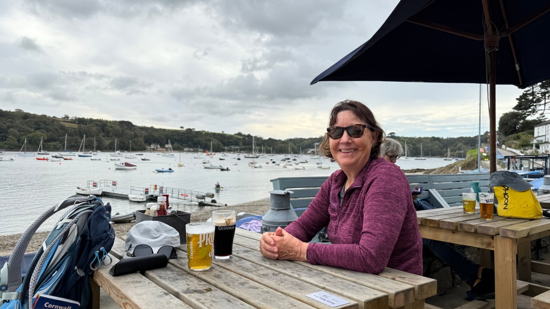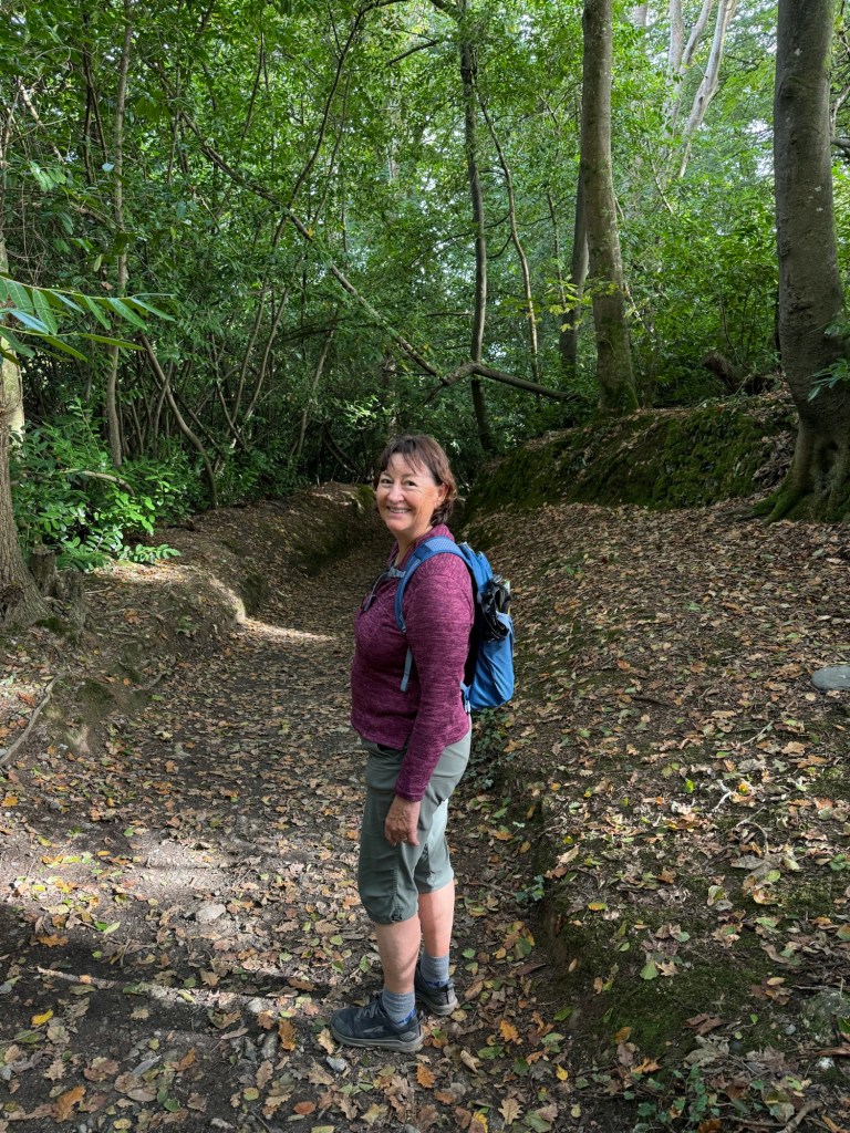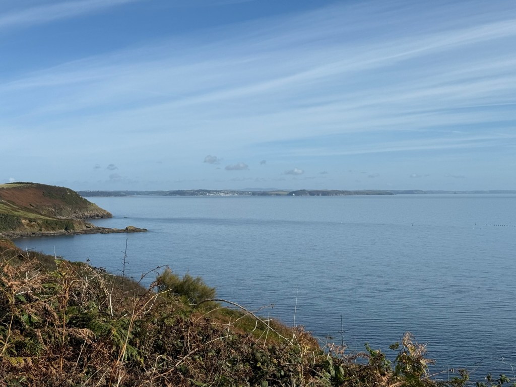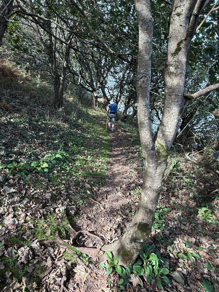 To backtrack a bit we decided to shorten the day by taking a taxi to Porthallow, which reduced our walk by at least two hours and took the risk out of a two ferry day. Porthallow is the halfway point of the South West Coast Path: 315 miles from either end, so it is a hit of a milestone stop. Anyway, it was our start for today and we clambered up onto what appears (depending on tomorrow’s path) the last of the majestic cliffs that have been part of everyday since we started. Less than a kilometre in we’d survived yet another very narrow trail separated from a sheer drop by a couple of brambles and were into farmland to Nare Point and from there forest pretty much until reaching our destination.